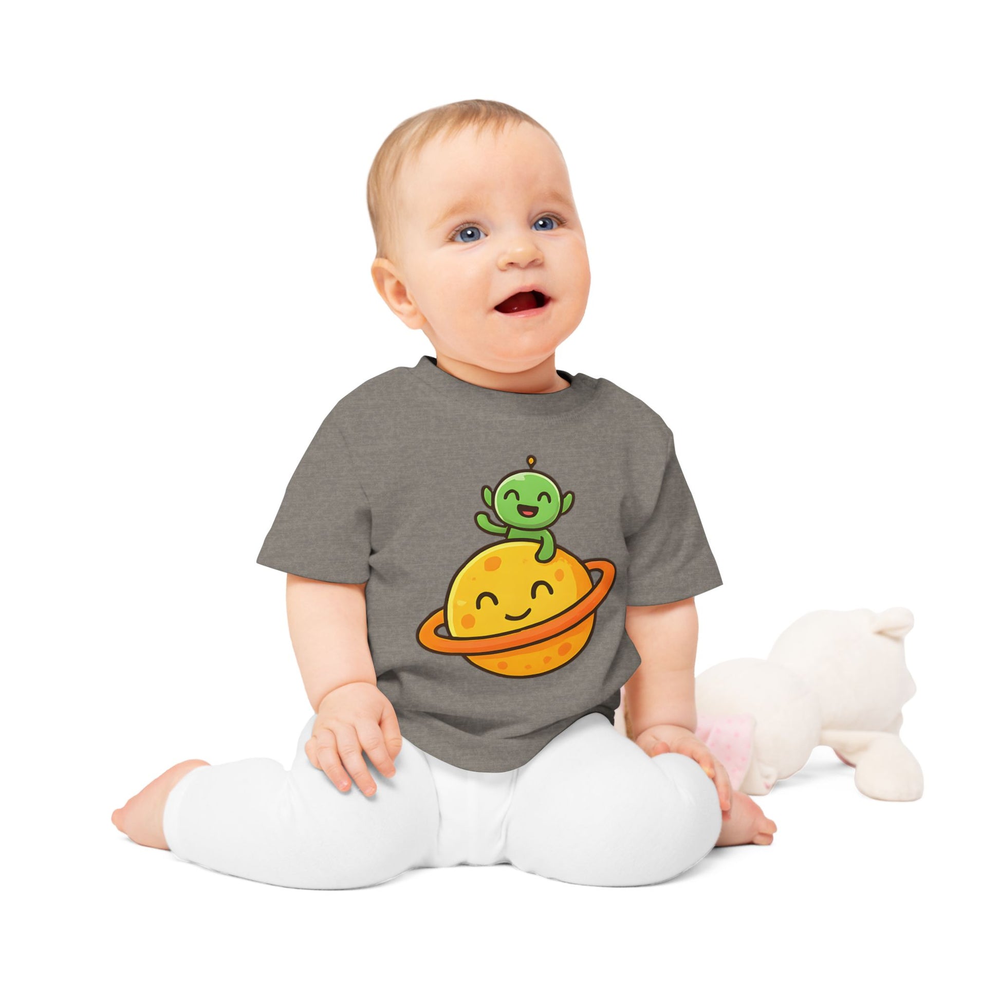 Baby T-Shirt „Space Buddy“ – Süßes Alien & Planet Motiv, Bio-Baumwolle, nachhaltige Weltraum-Babybekleidung