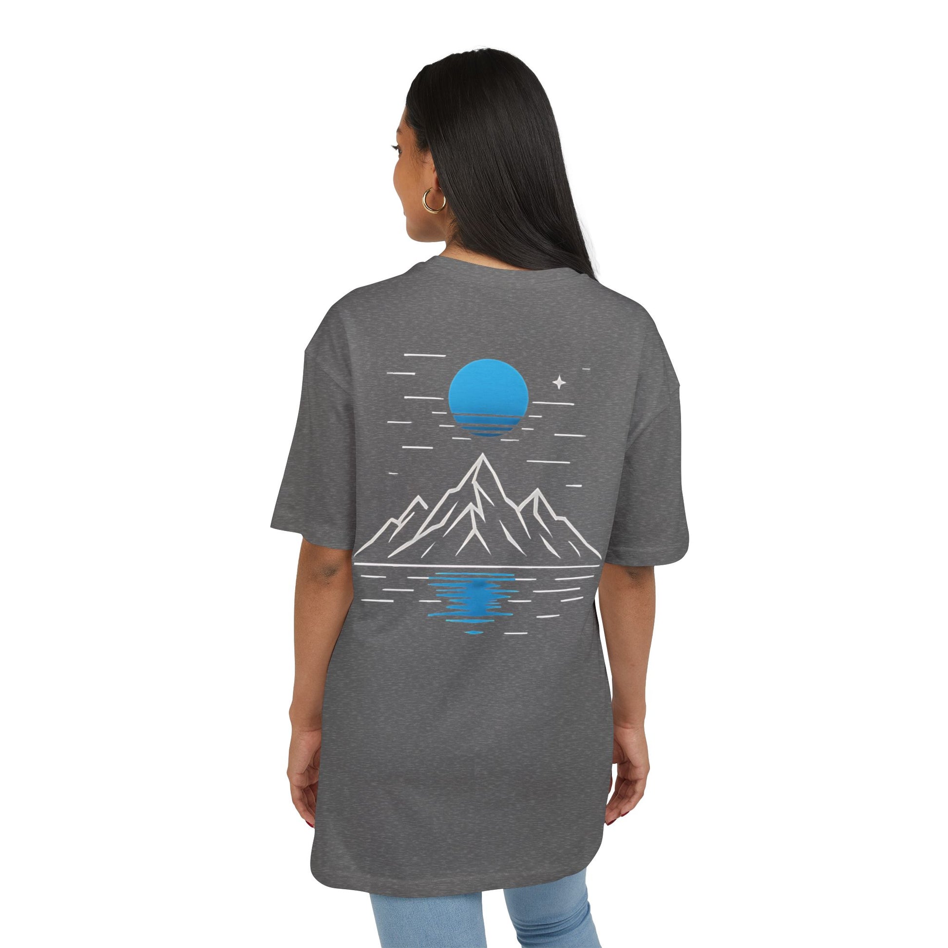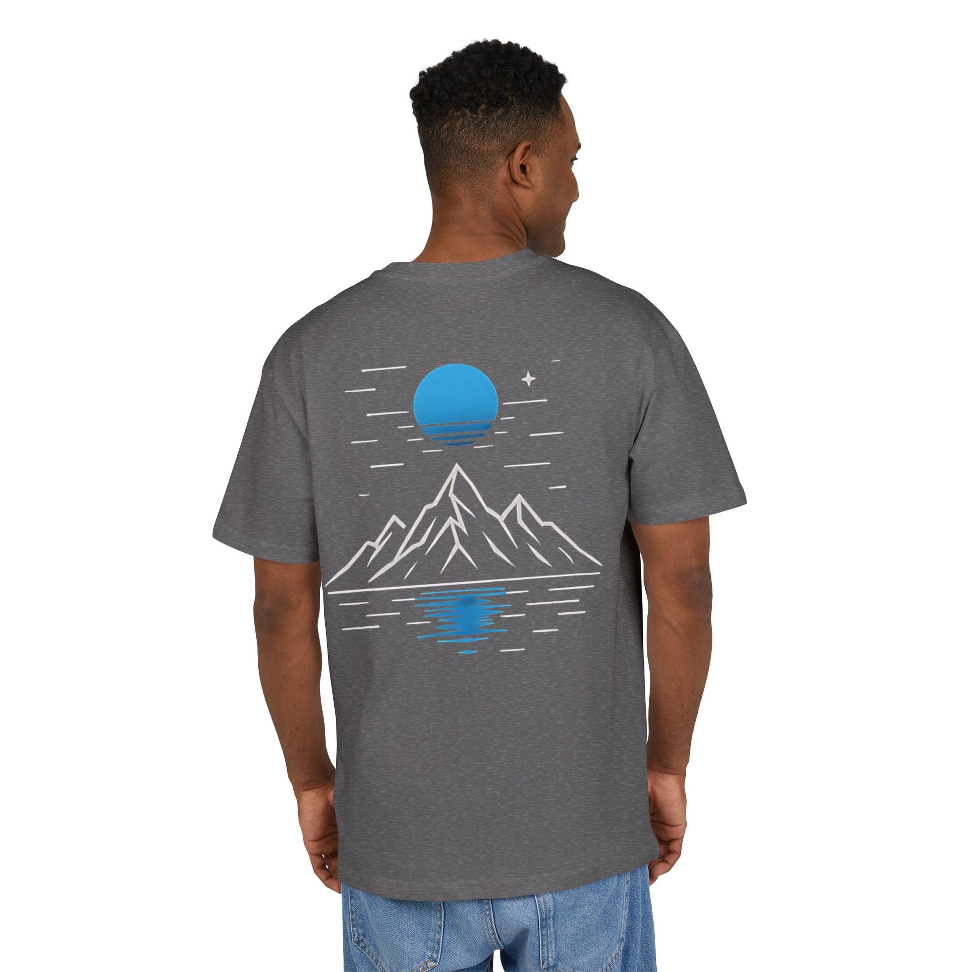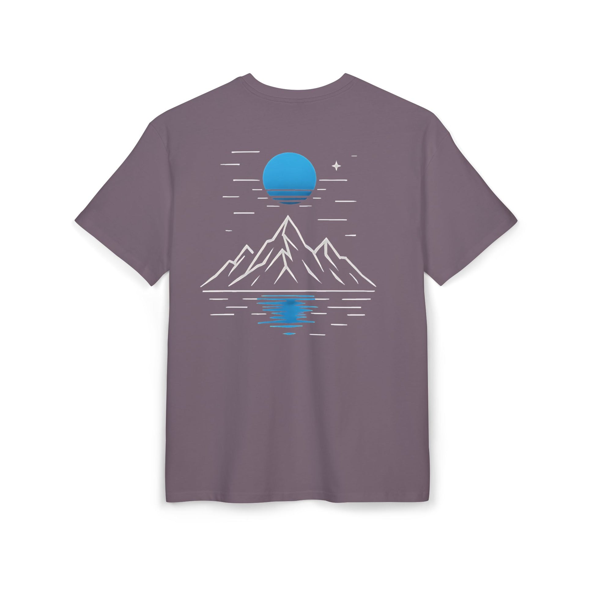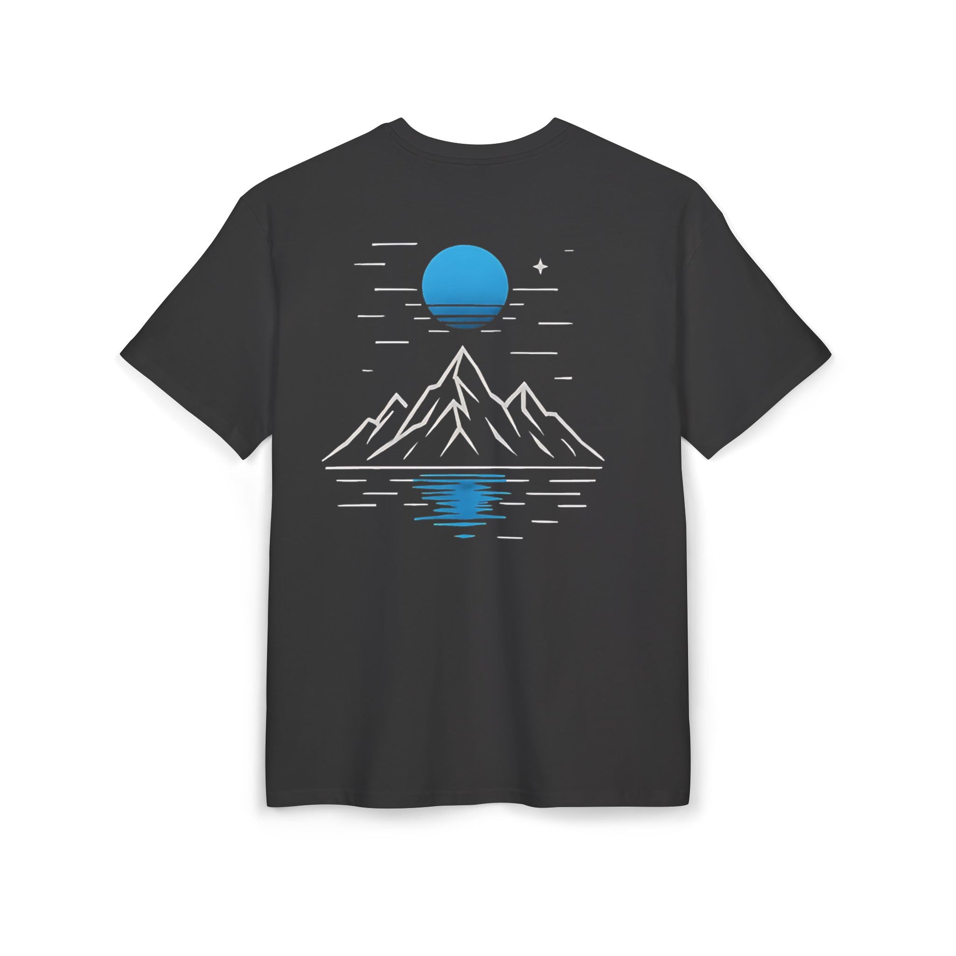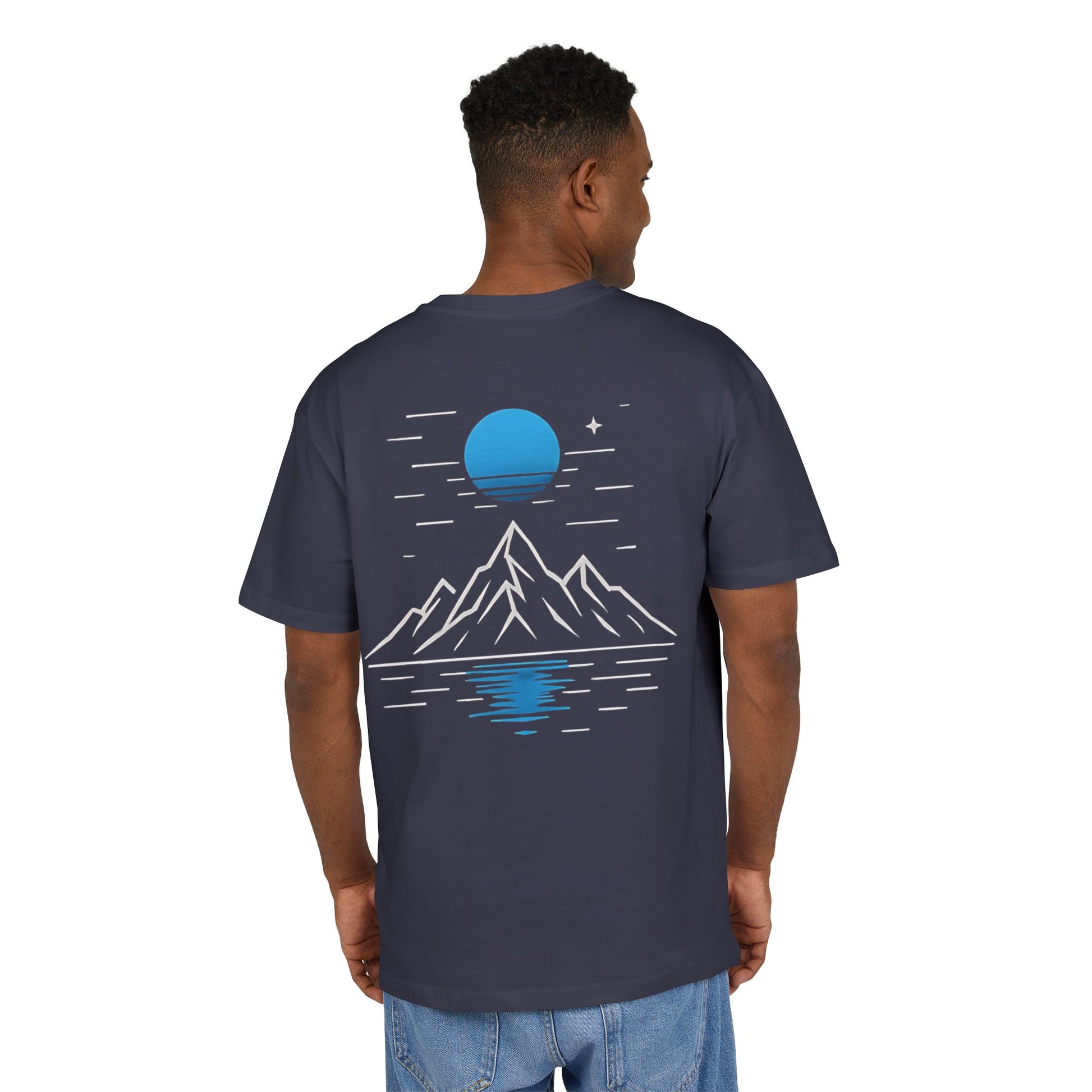 Berg T-Shirt (Rückenprint) – Minimalistisches Natur Design mit Mond & Spiegelung – Unisex Outdoor Shirt für Wanderer & Naturfreunde