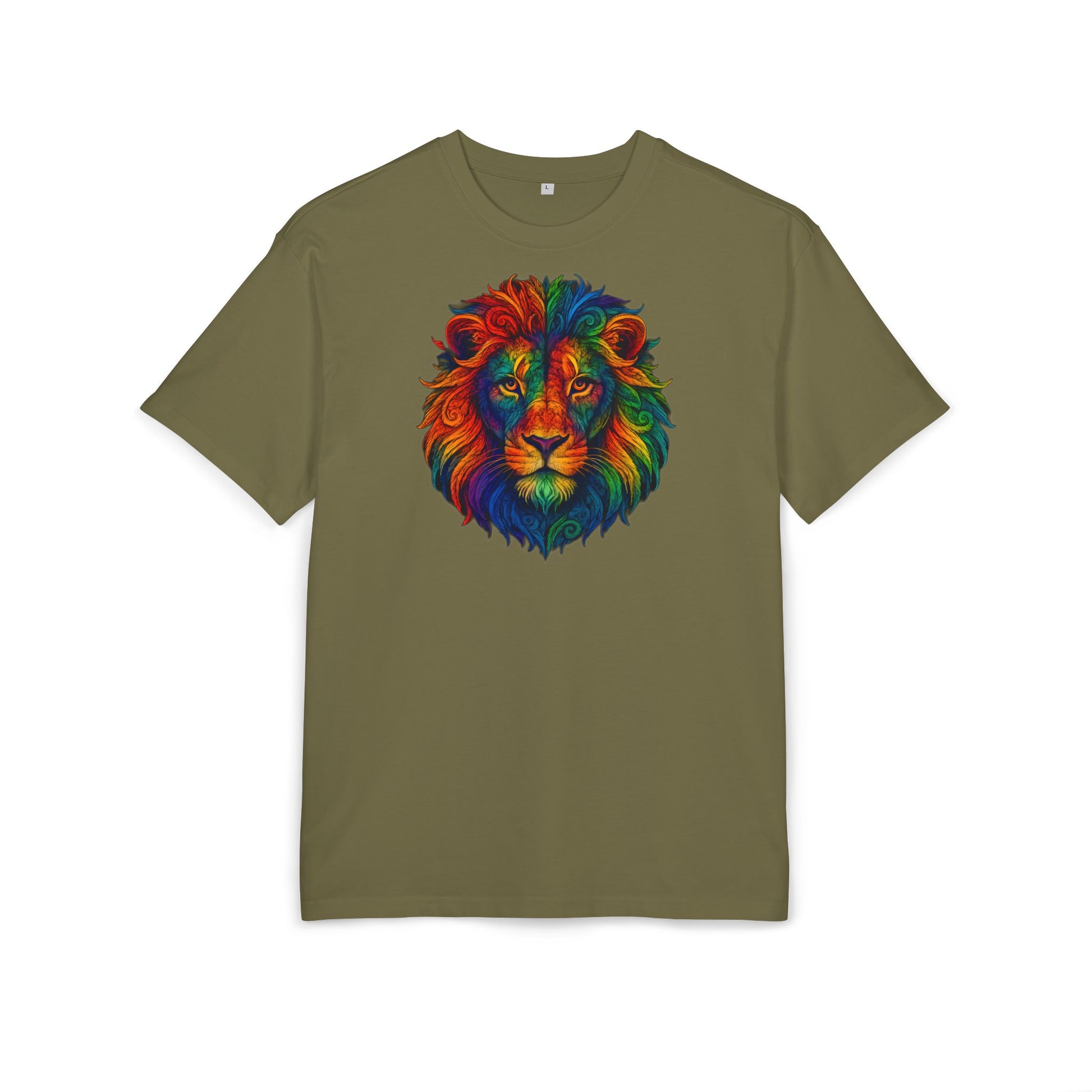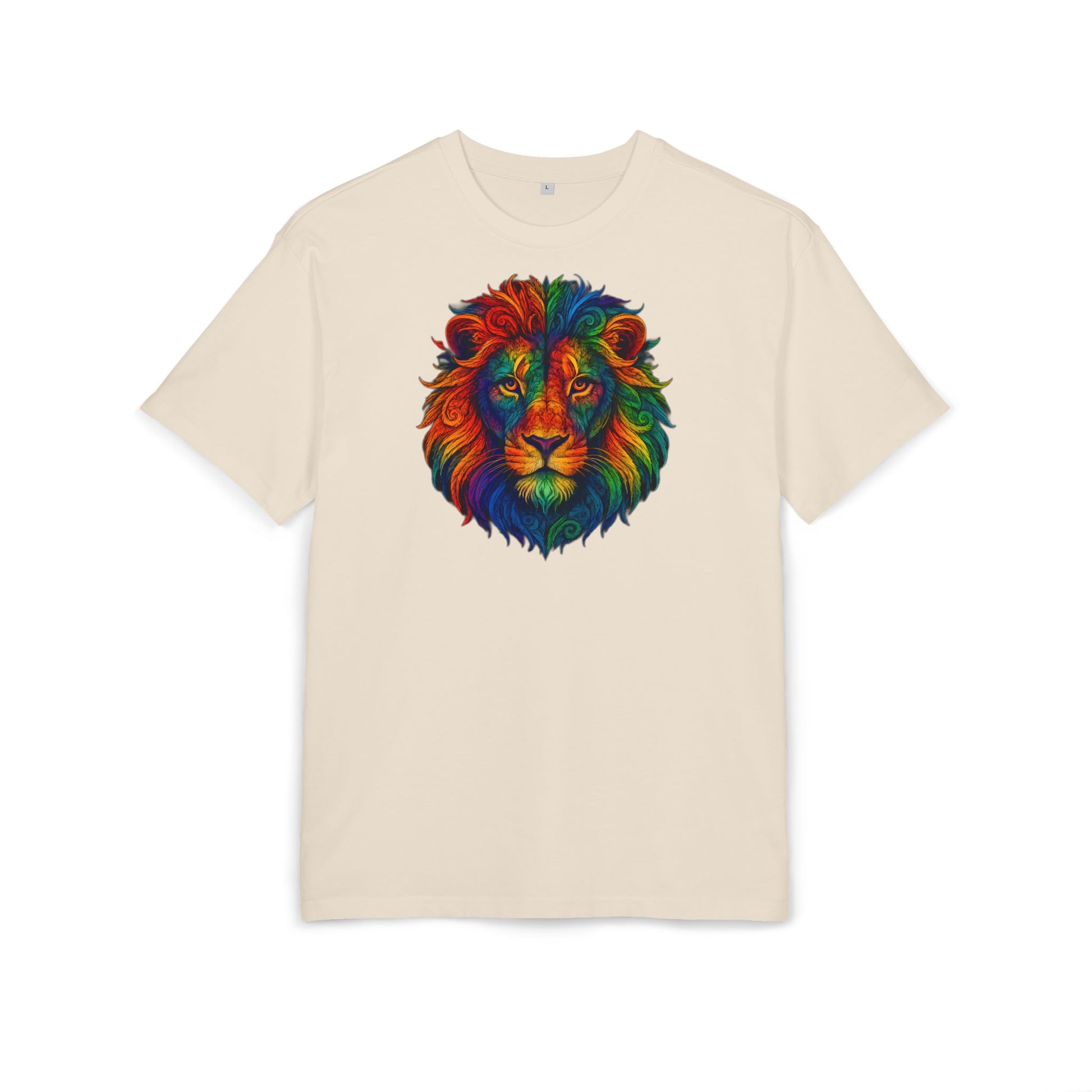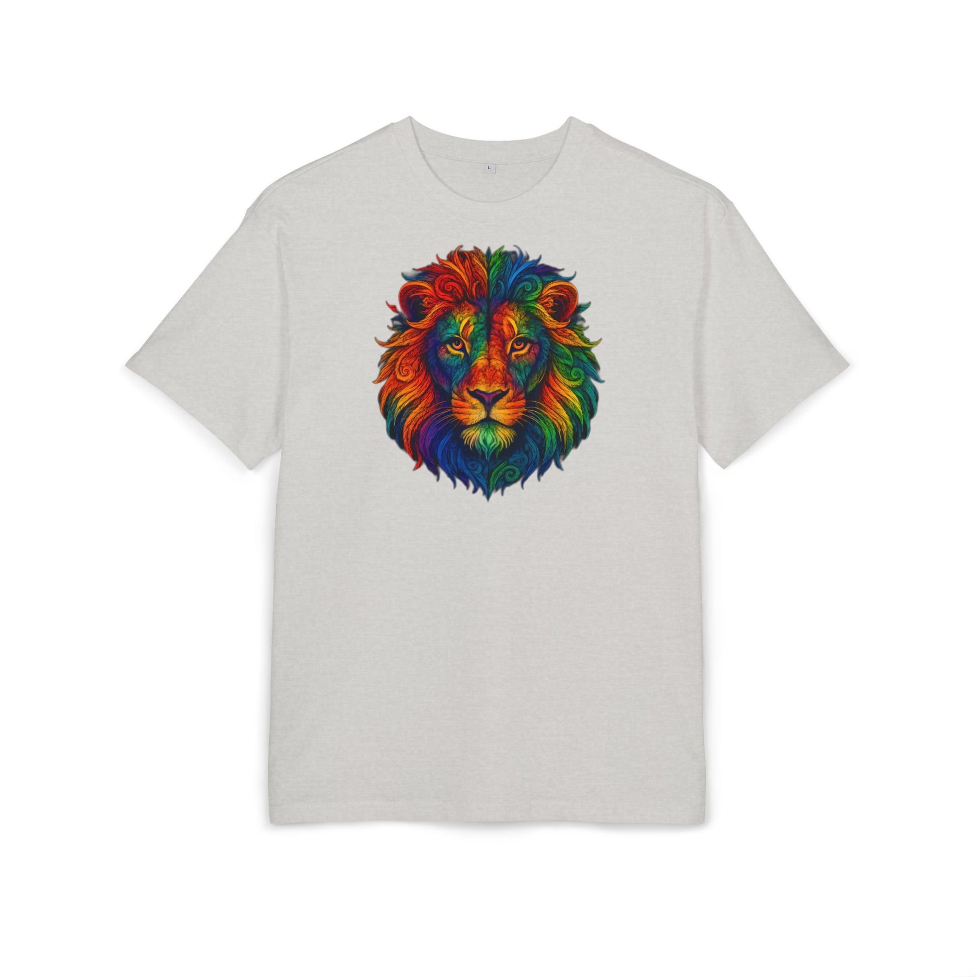 Buntes Löwen T-Shirt (Brustprint) – Psychedelisches Tiermotiv im Boho-Stil – Unisex Oversize Shirt für Kunst-, Natur- & Festival-Fans