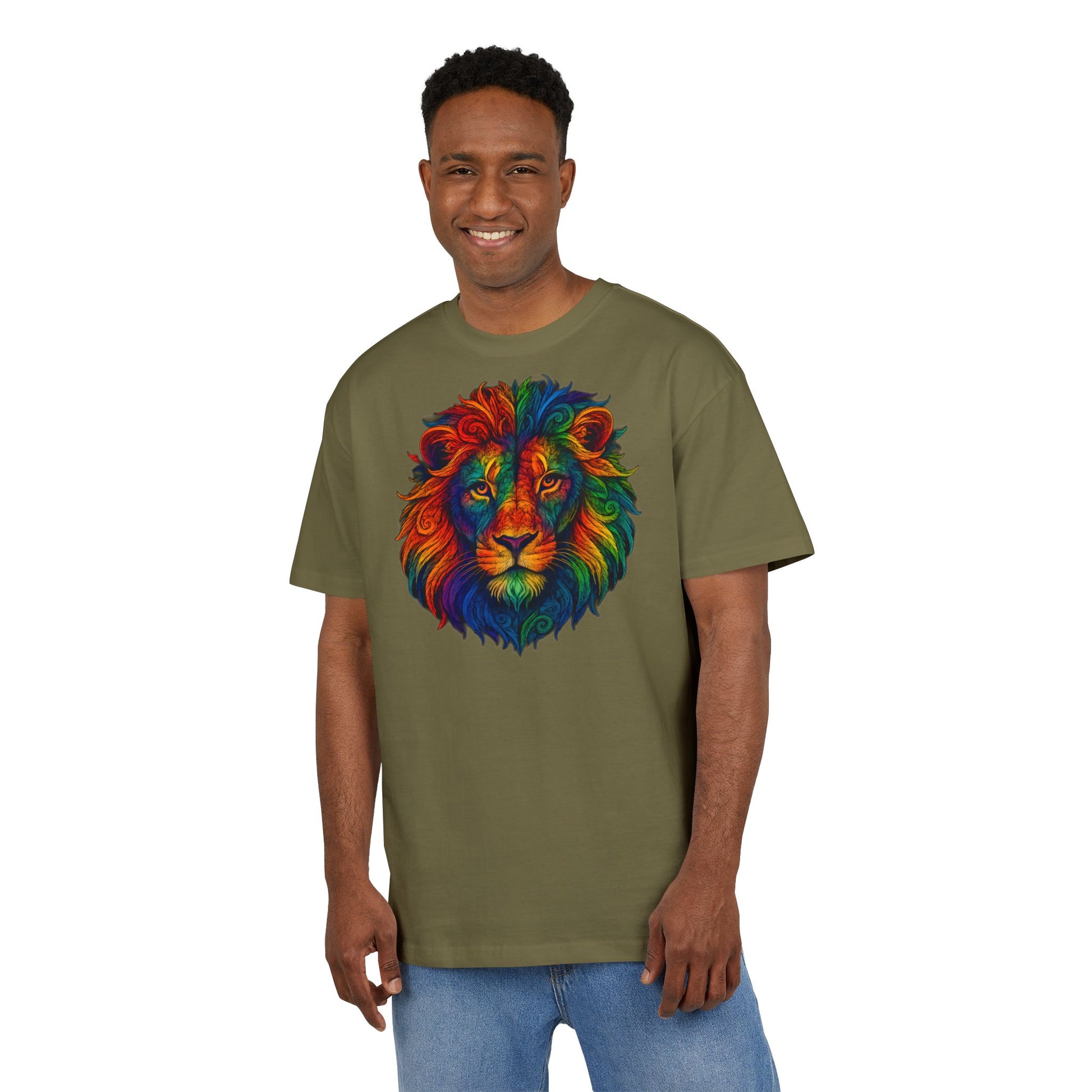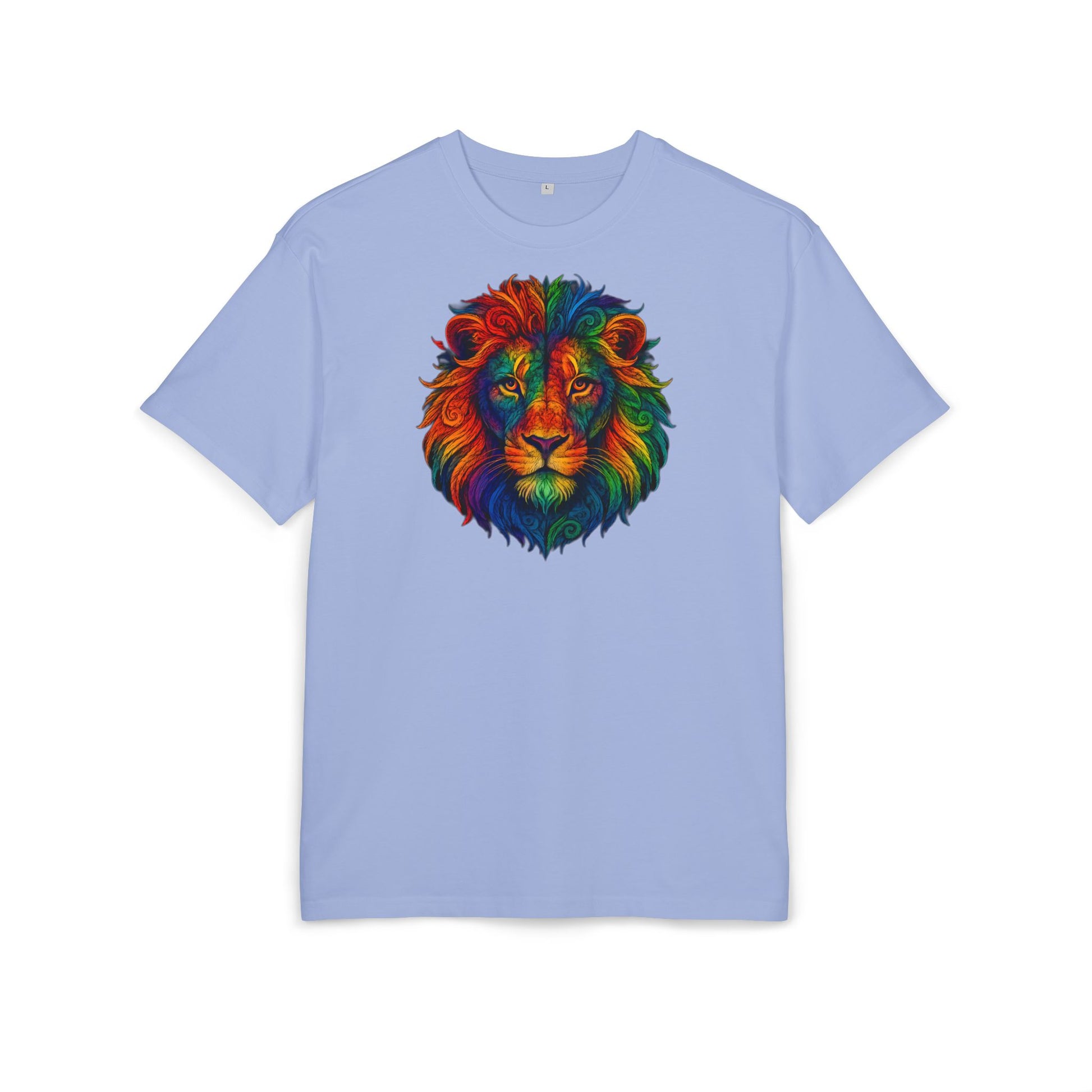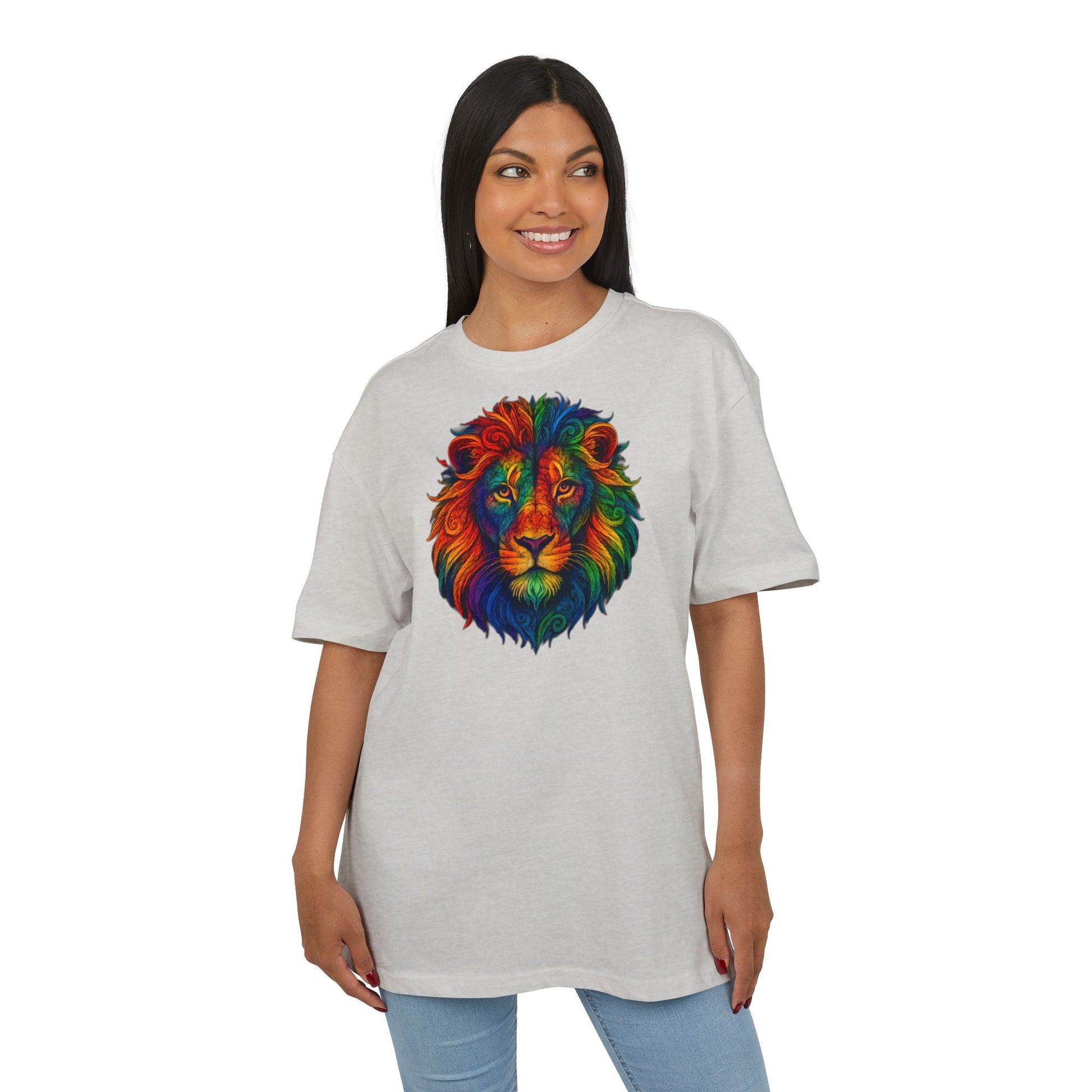 Buntes Löwen T-Shirt (Brustprint) – Psychedelisches Tiermotiv im Boho-Stil – Unisex Oversize Shirt für Kunst-, Natur- & Festival-Fans