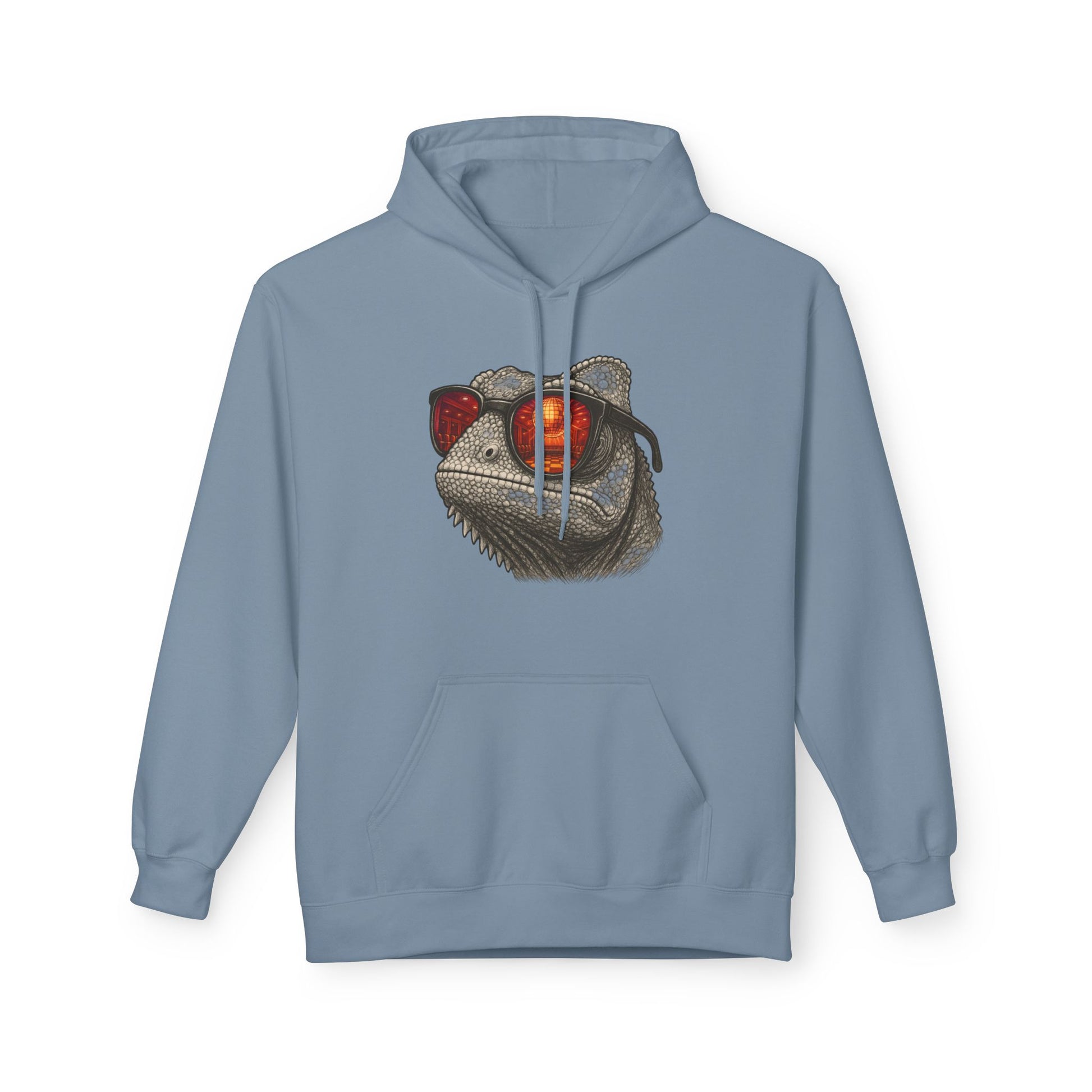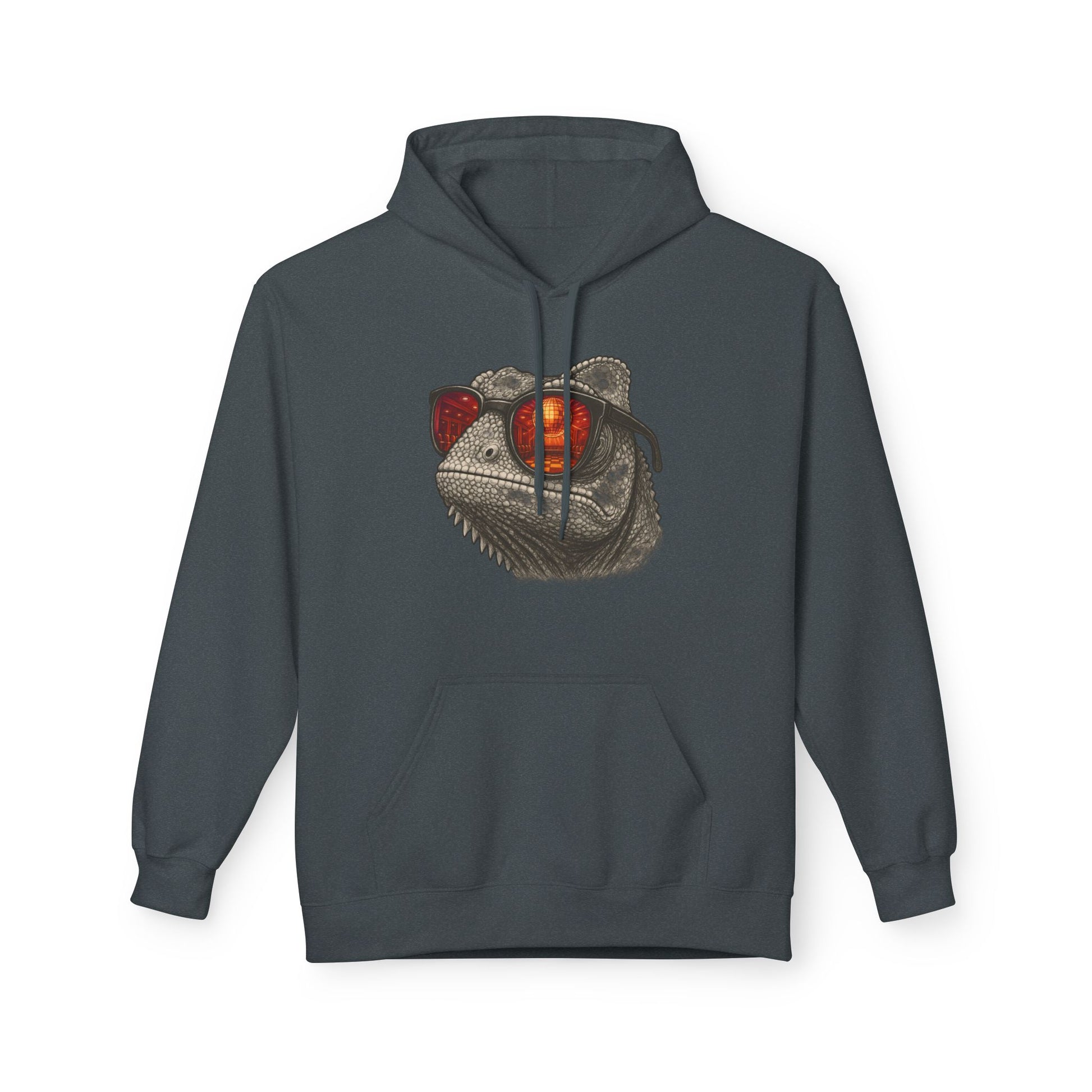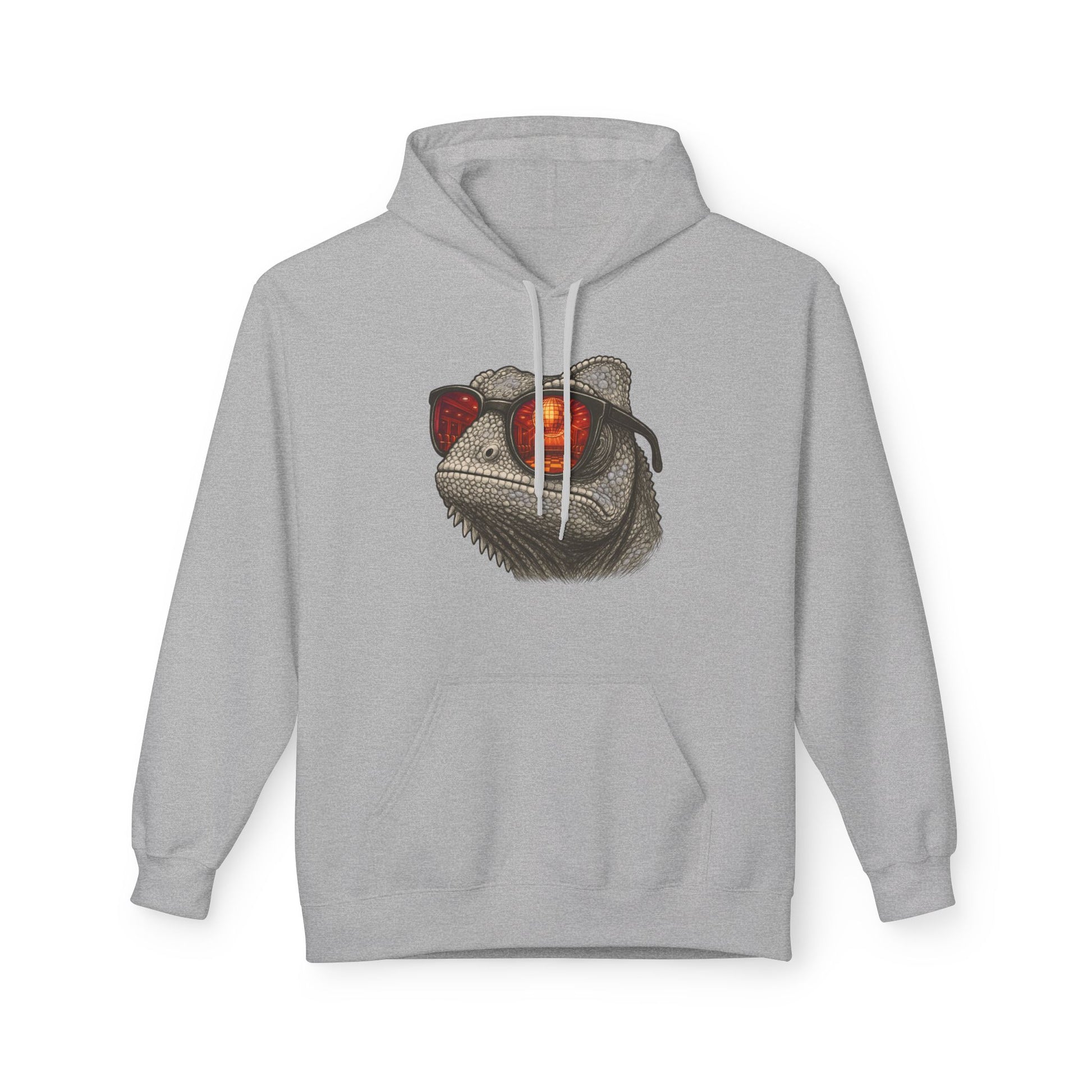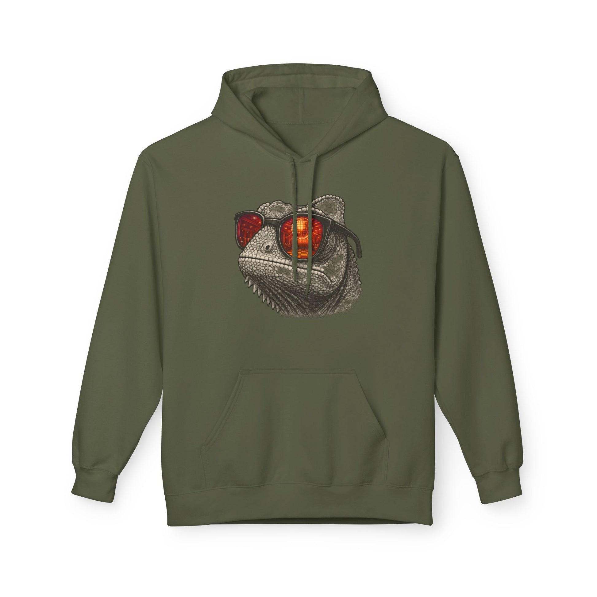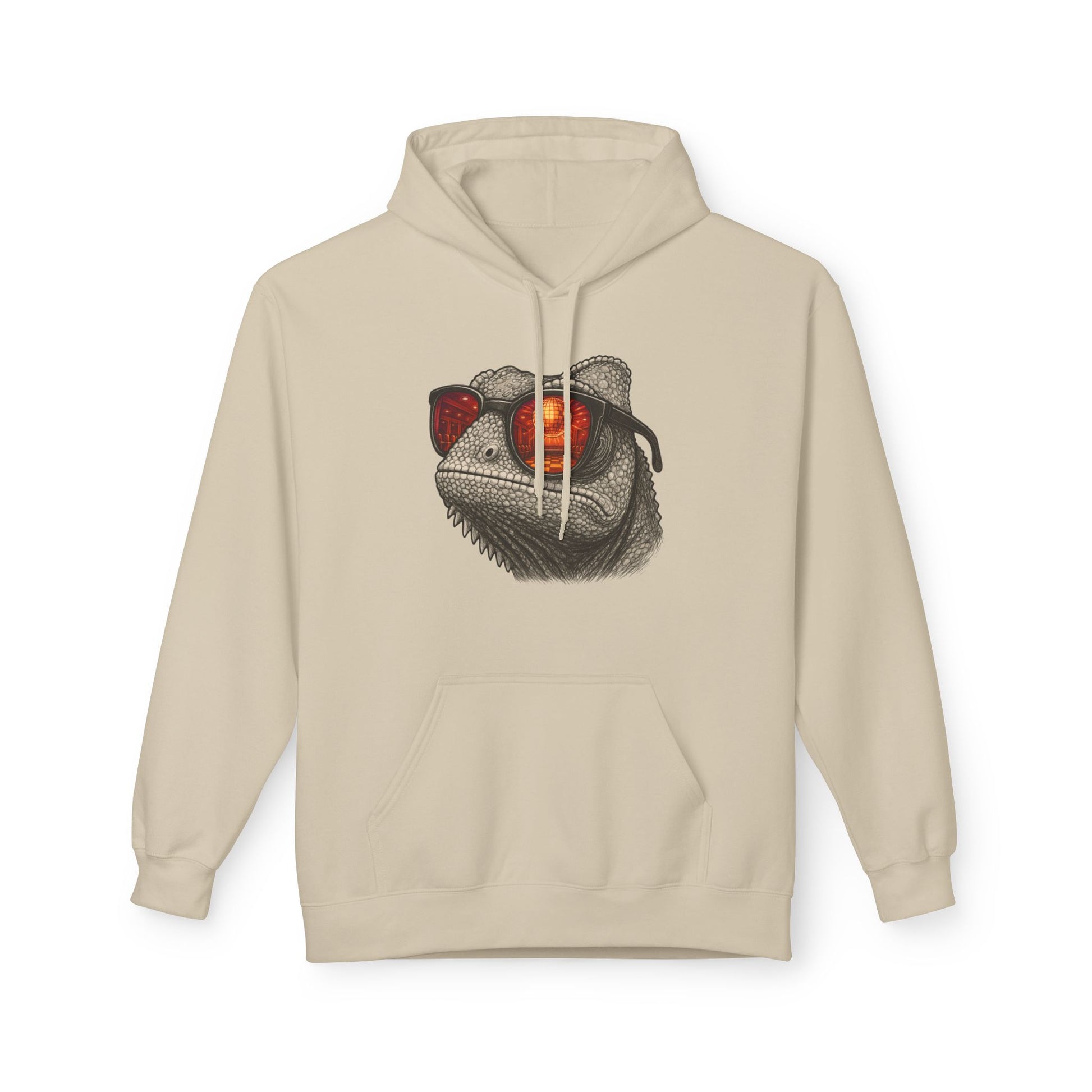 Chamäleon Hoodie Unisex (Brustprint) – Retro Tiermotiv mit Sonnenbrille & Disco-Design – Lustiger Kapuzenpullover für Festival, Streetwear & Geschenkideen