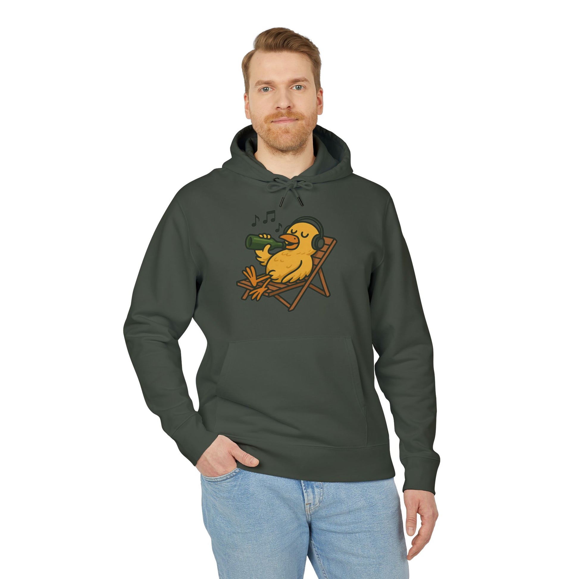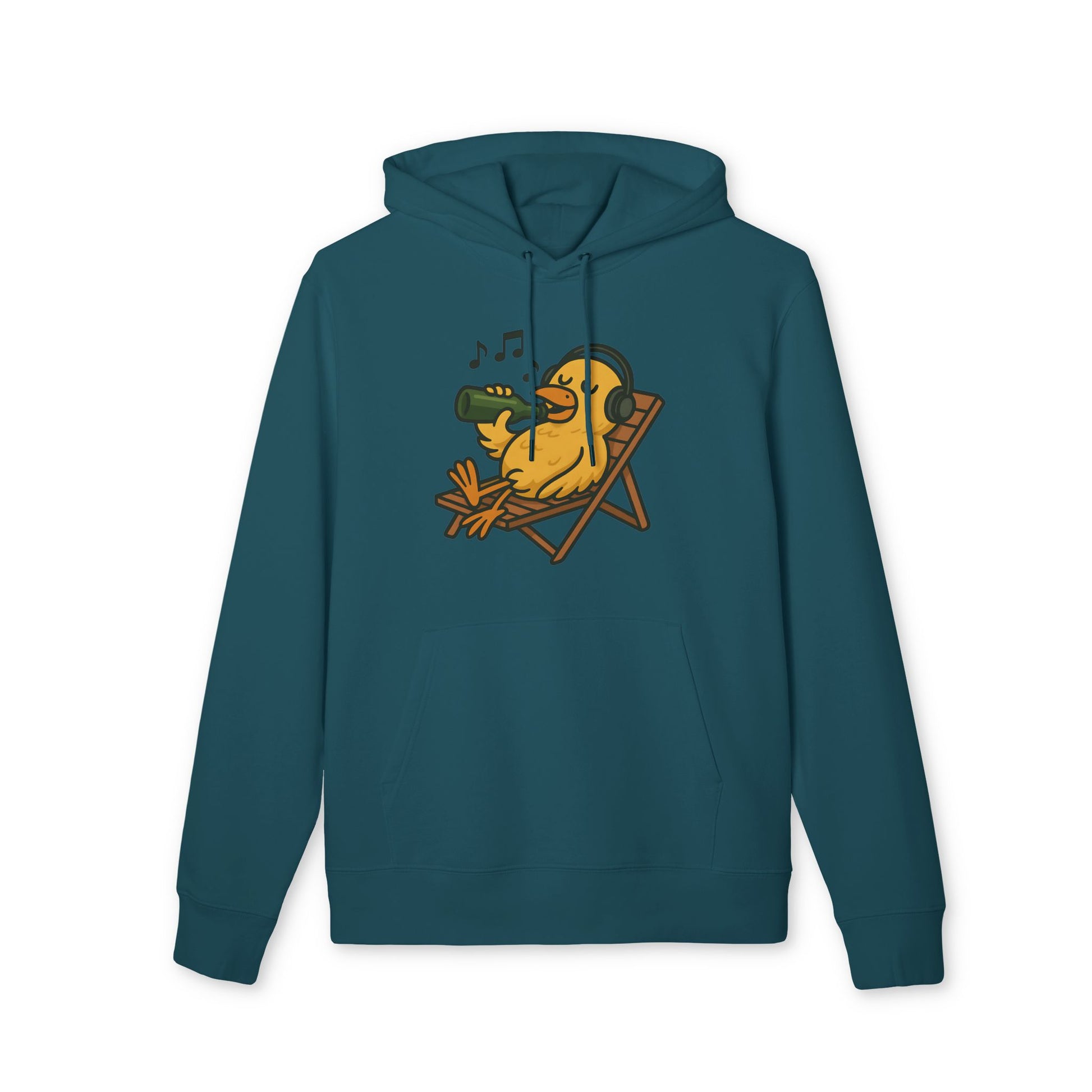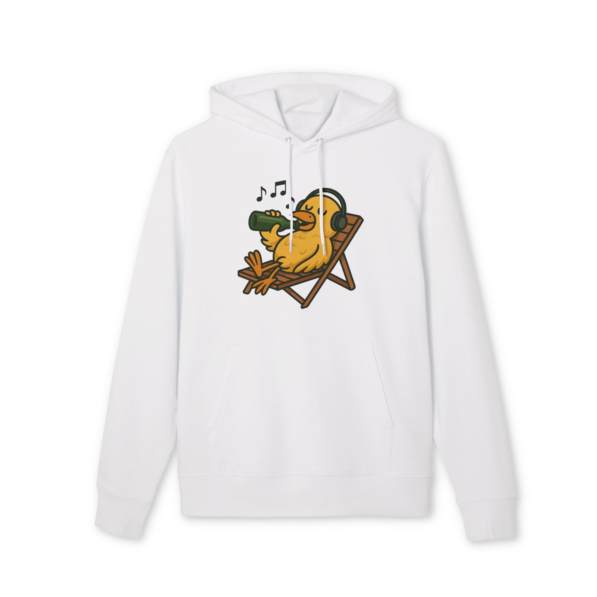 Chillente Hoodie (Brustprint) – Lustiger Unisex Kapuzenpullover mit Ente, Bier & Musik-Motiv | Perfekt für Freizeit, Festivals & Sommer