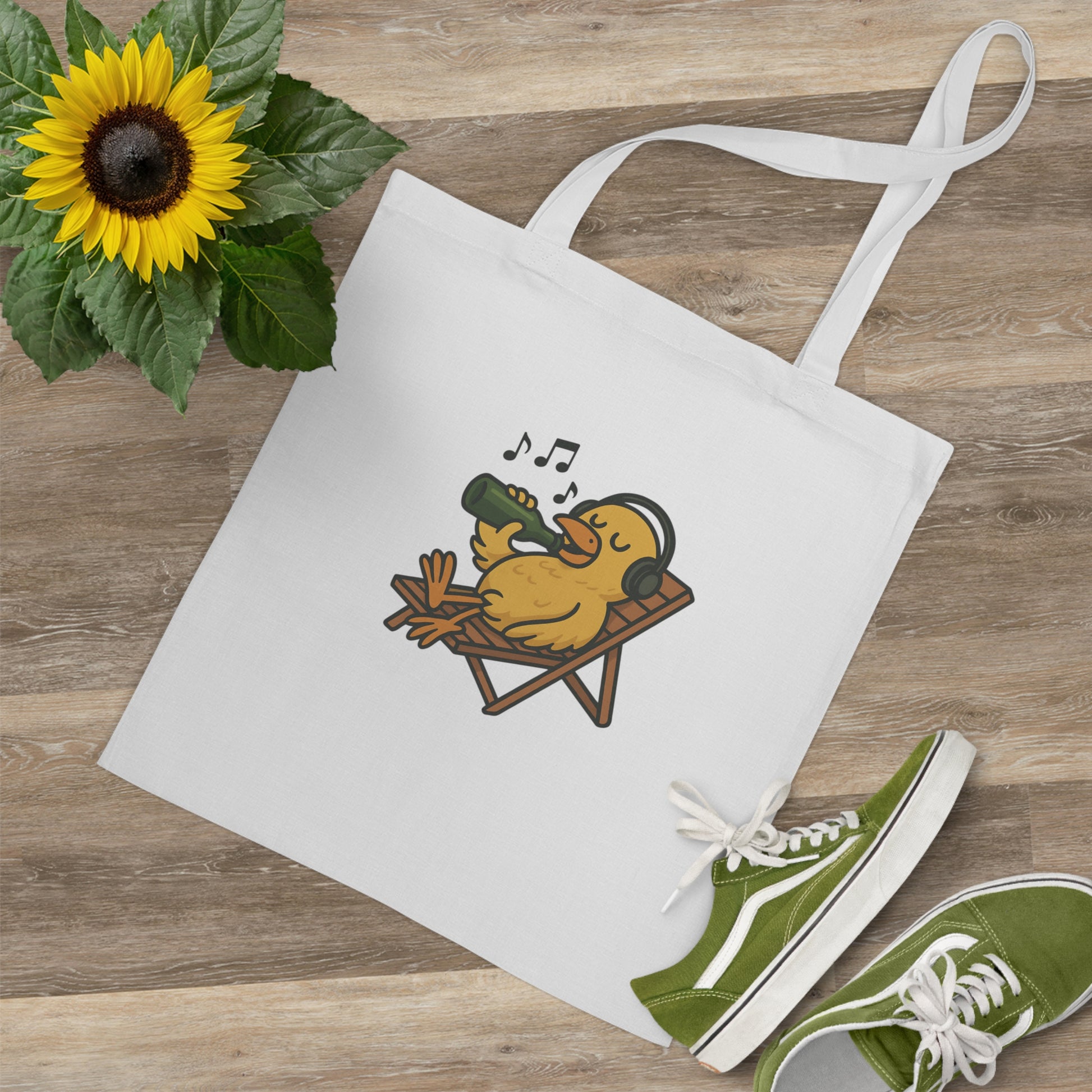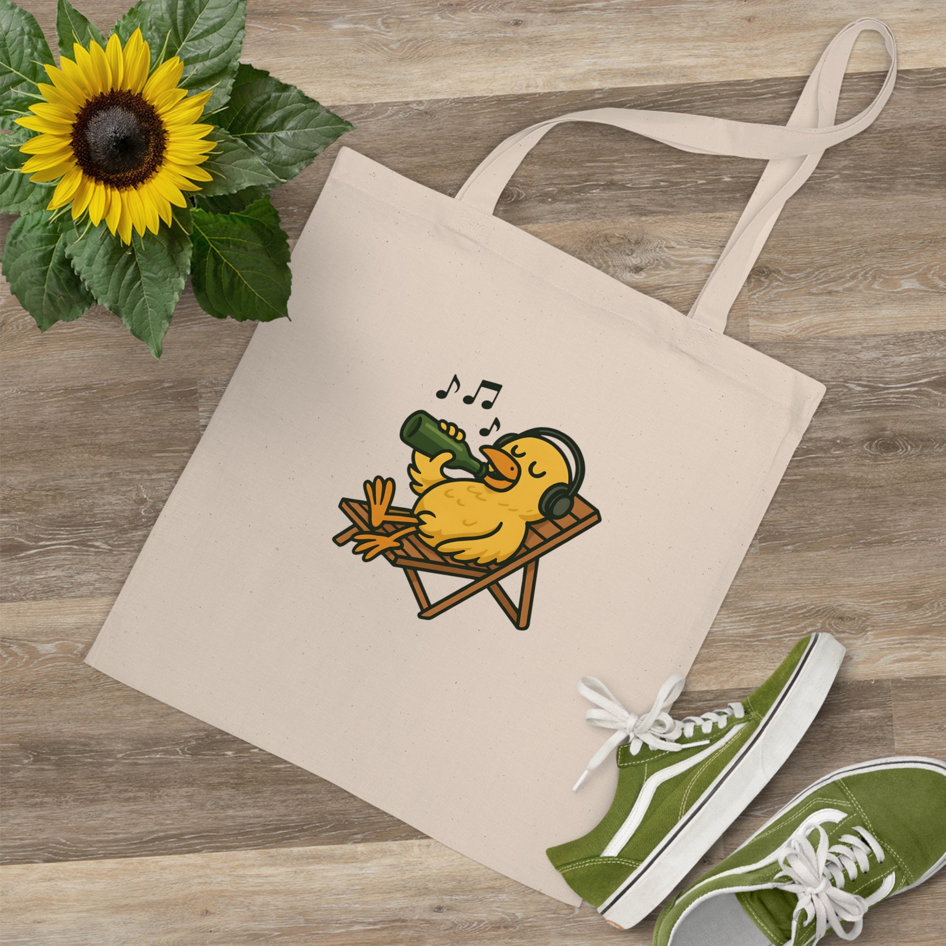 Chillente Jutebeutel – Lustiger Stoffbeutel mit Ente, Bier & Musik | Nachhaltige Tragetasche für Festival, Alltag & Freizeit