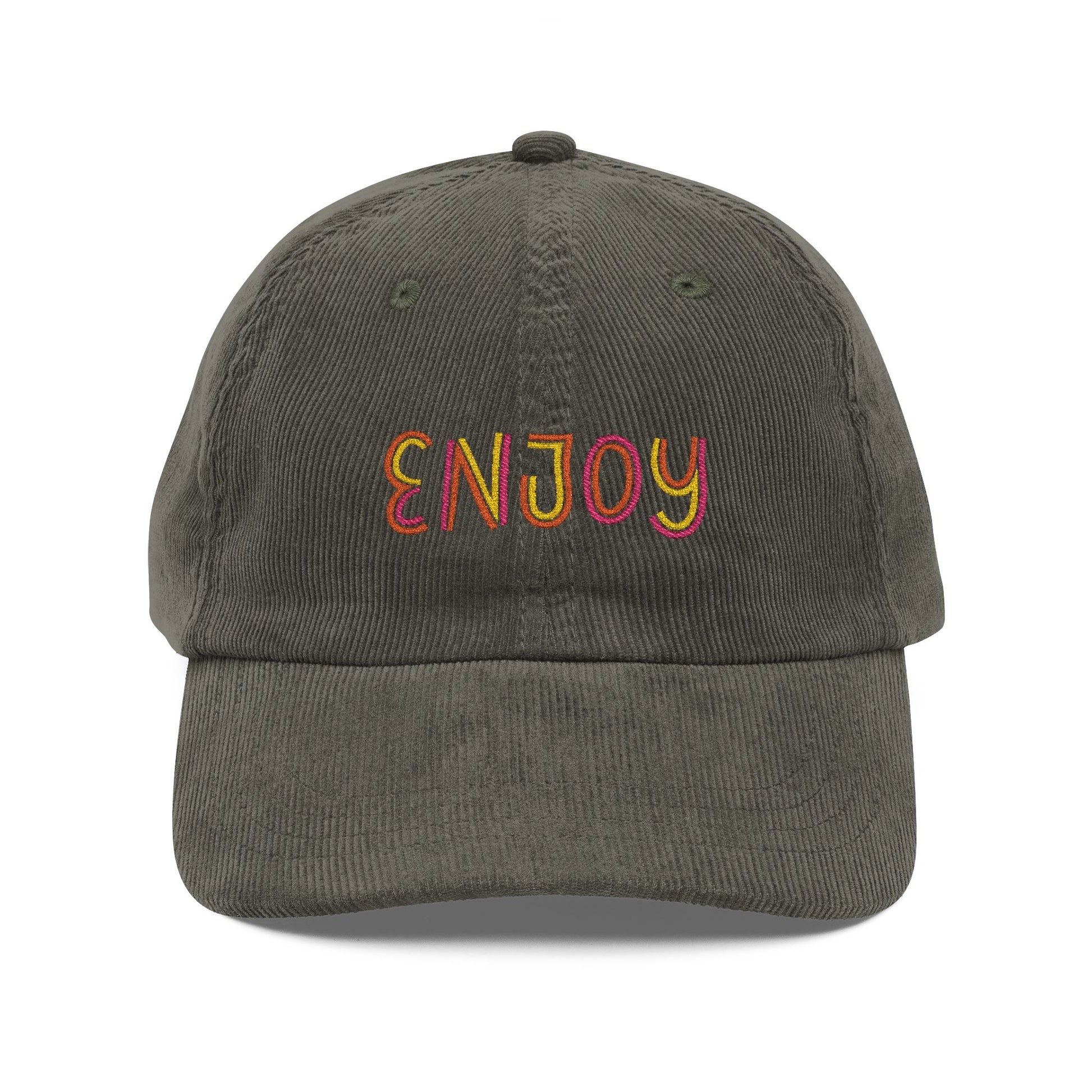 Enjoy Cord Cap – Retro Cord Basecap mit bunter Stickerei - Good Vibes, Gift for Friends, Relaxed Fashion