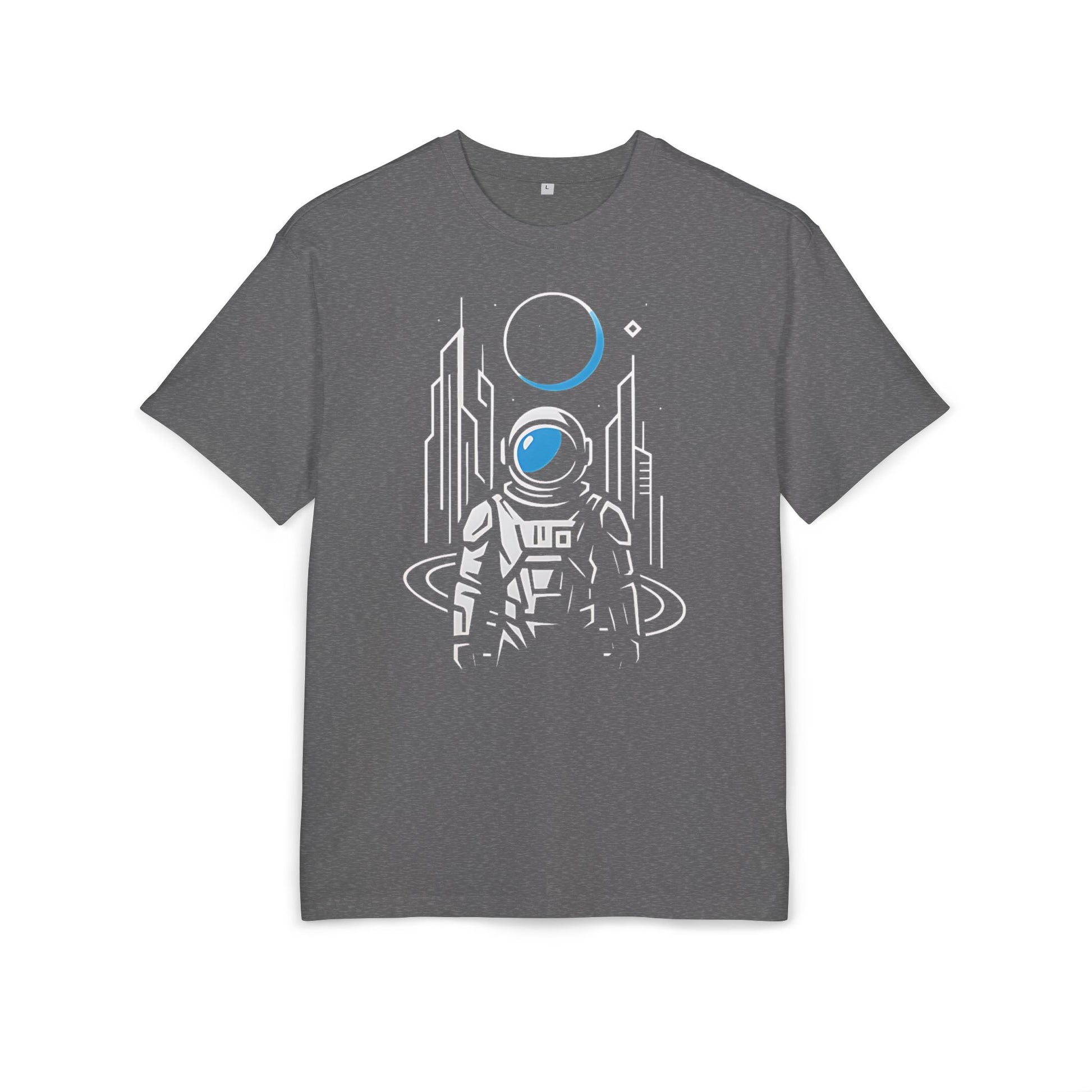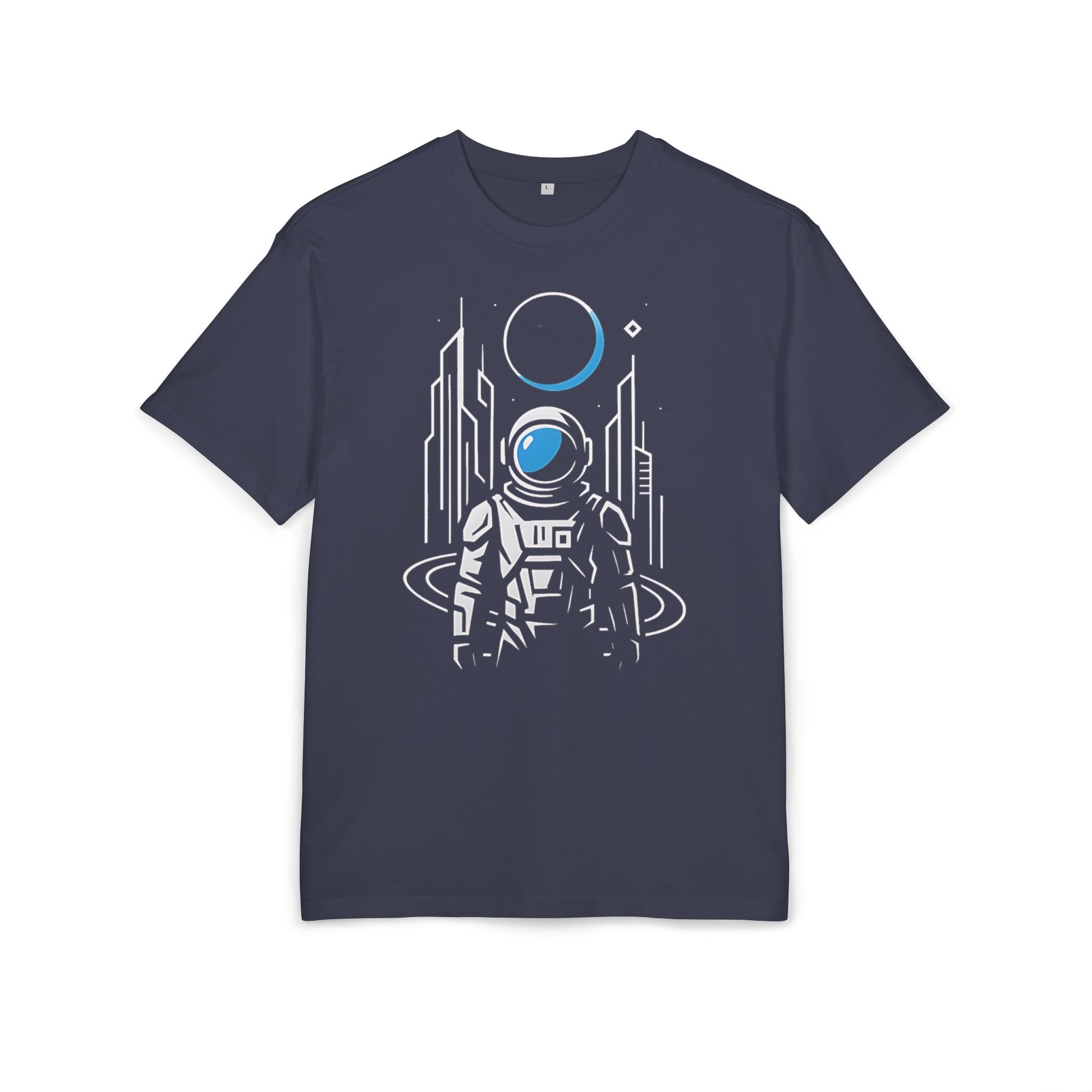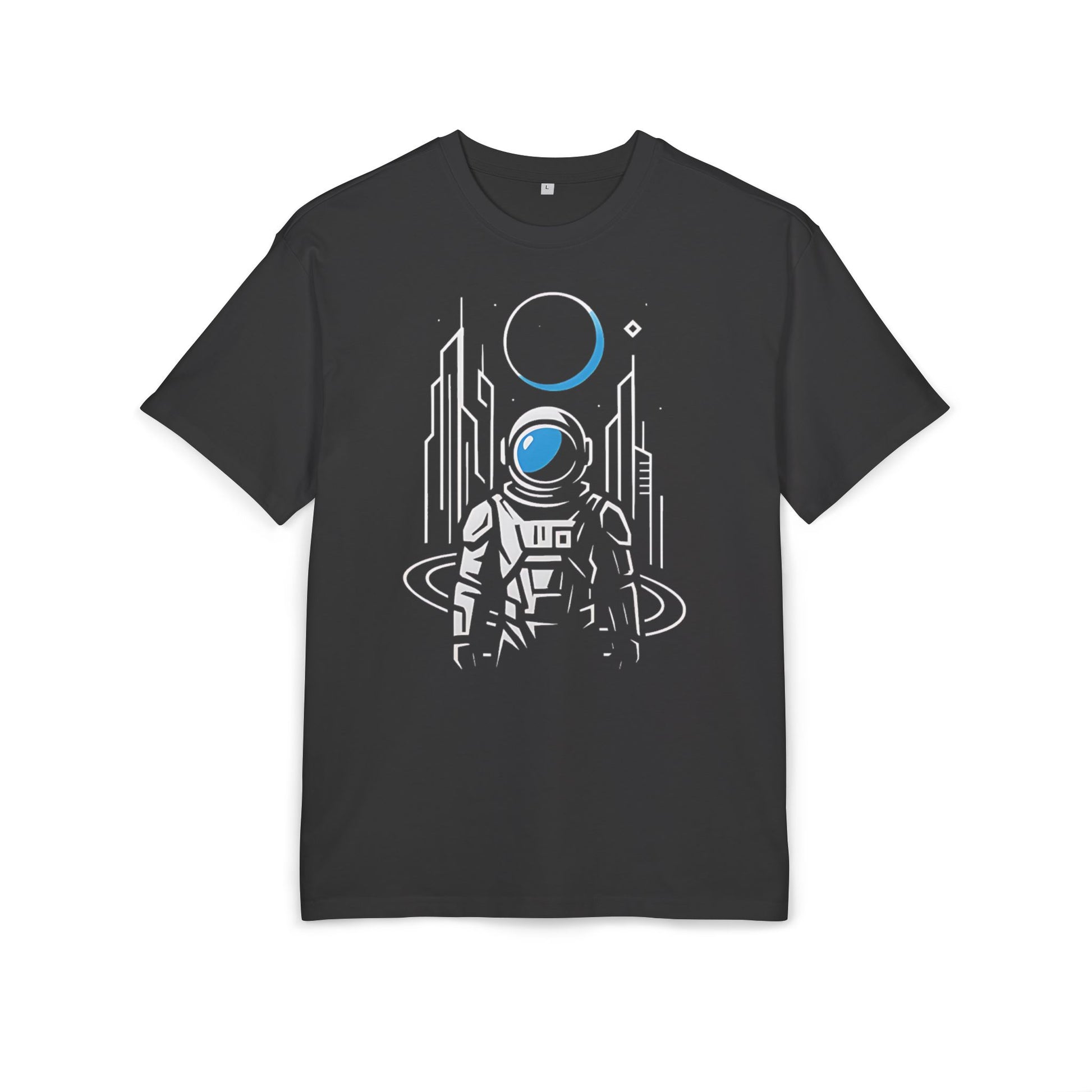 Futuristisches Astronauten T-Shirt (Brustprint) – Space Design mit Sci-Fi Skyline & Planet – Spacewear für Weltraum-Fans