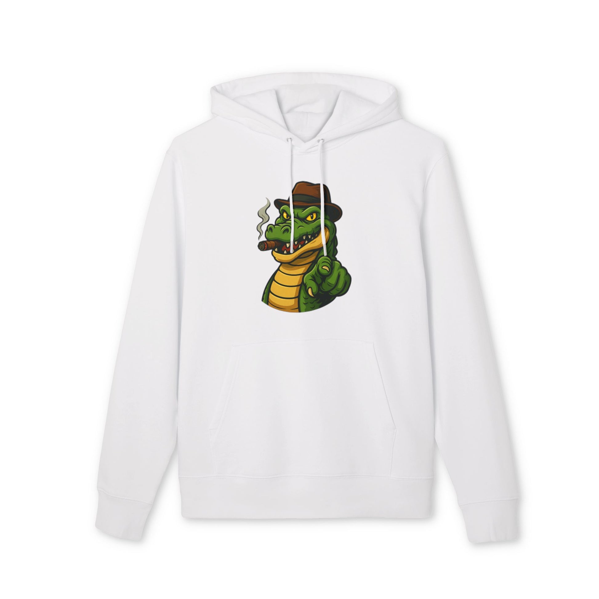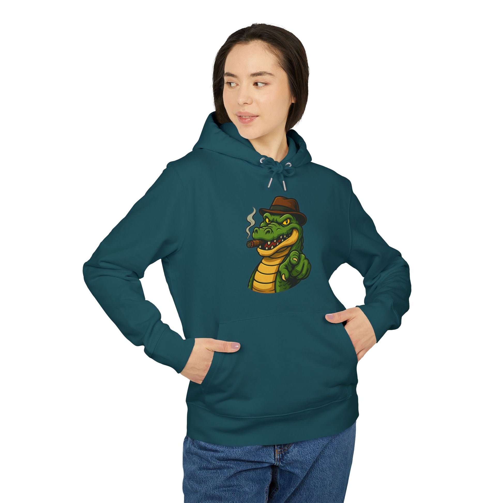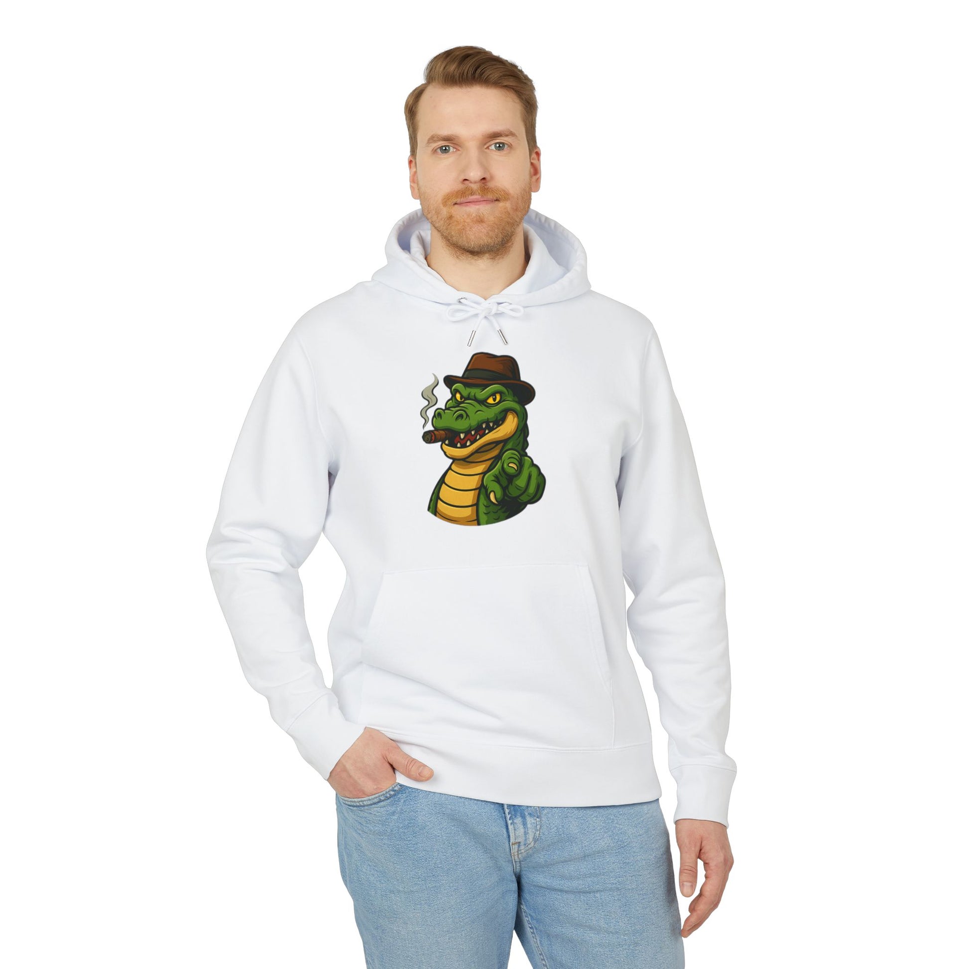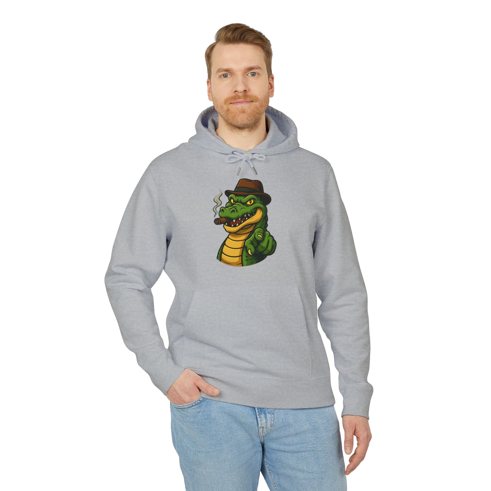 Gangster Alligator Hoodie (Brustprint) – Cooler Unisex Kapuzenpullover mit Krokodil, Zigarre & Hut im Comic Style