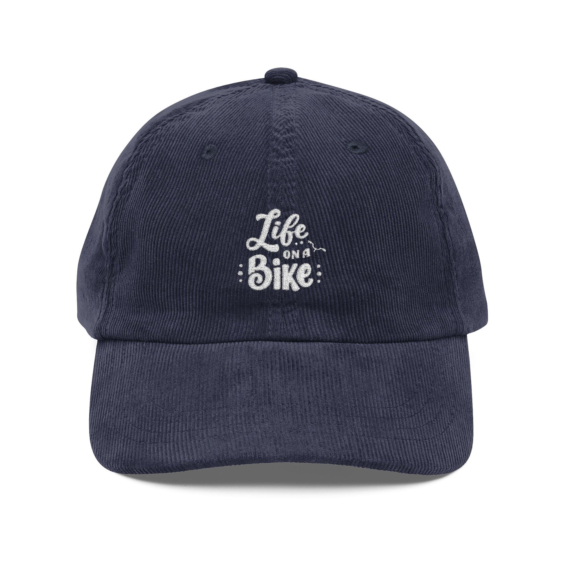 Life on a Bike Cord Cap – Retro Cord Basecap mit Stickerei