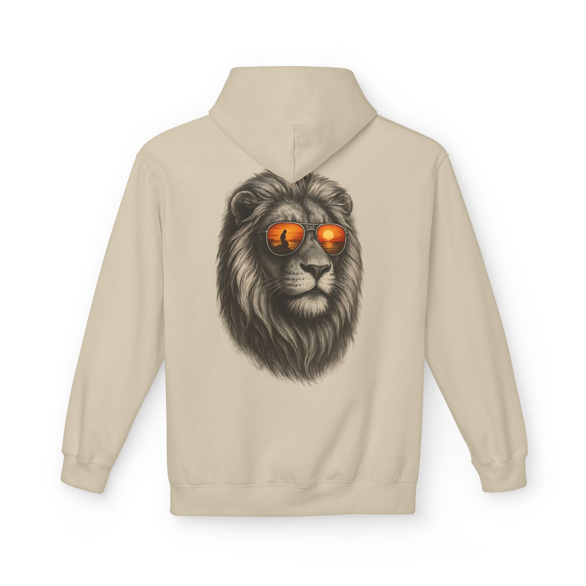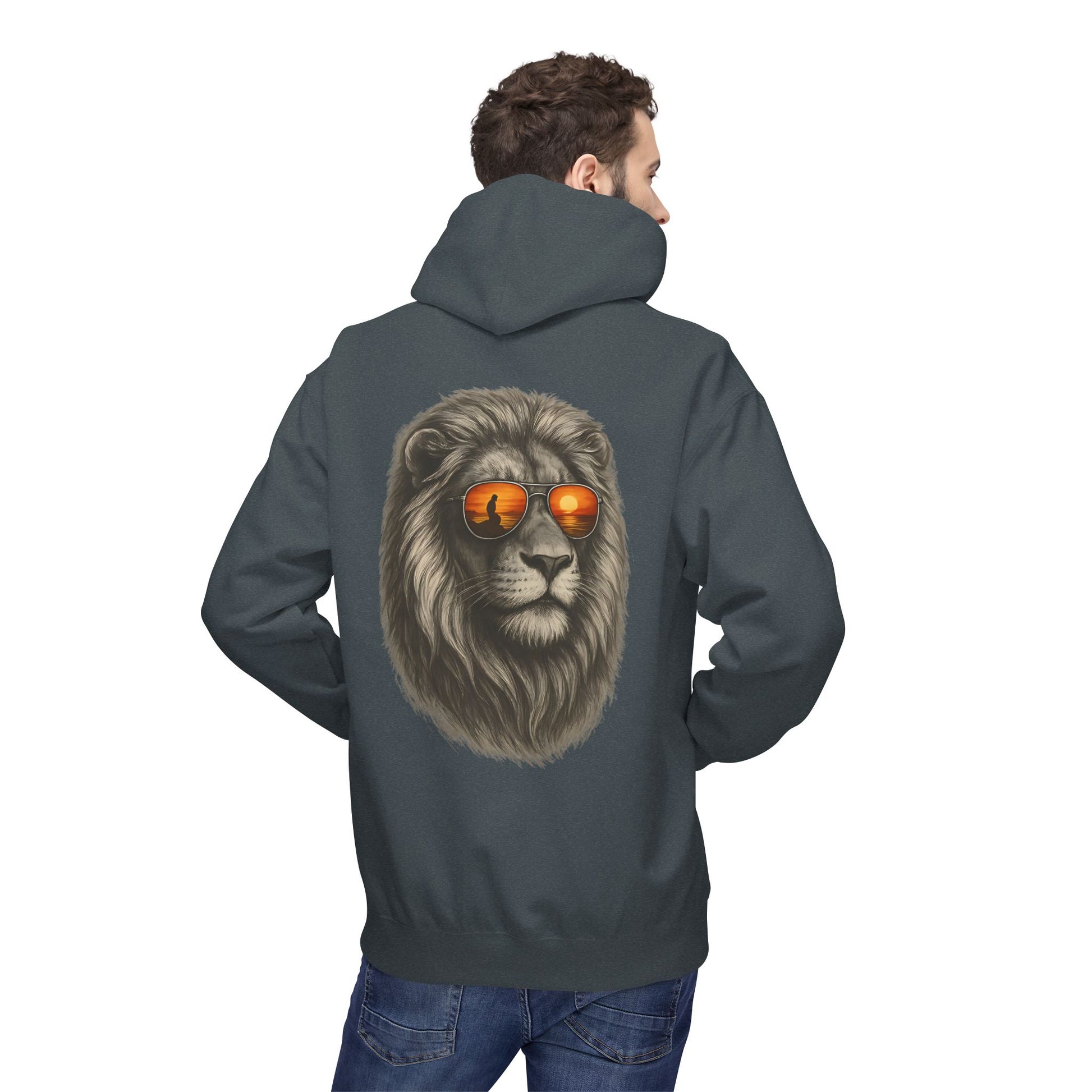 Löwen Hoodie Unisex (Rückenprint) – Stylischer Kapuzenpullover mit Sonnenbrillen-Löwe | Tiermotiv Streetwear für Damen & Herren