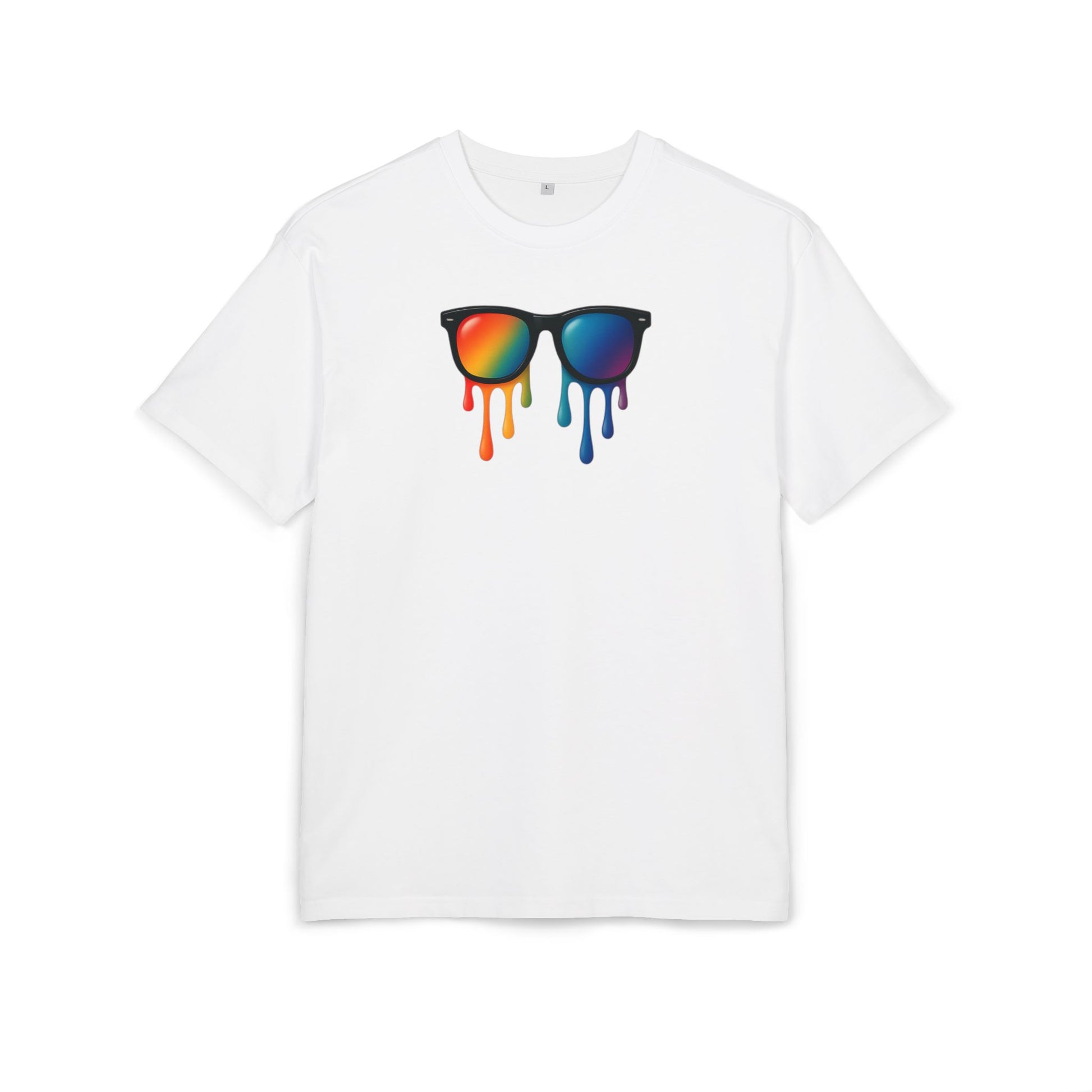 Melting Rainbow Shades T-Shirt (Brustprint) – Stylisches Unisex Shirt mit bunter Sonnenbrille & Farbverlauf | Cooles Sommer & Festival Design
