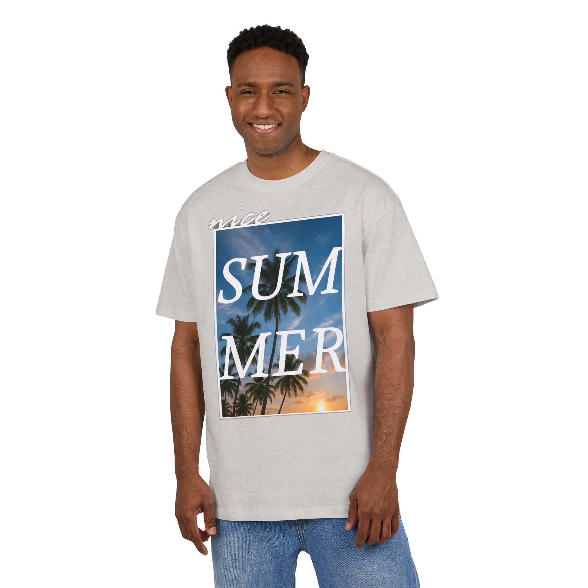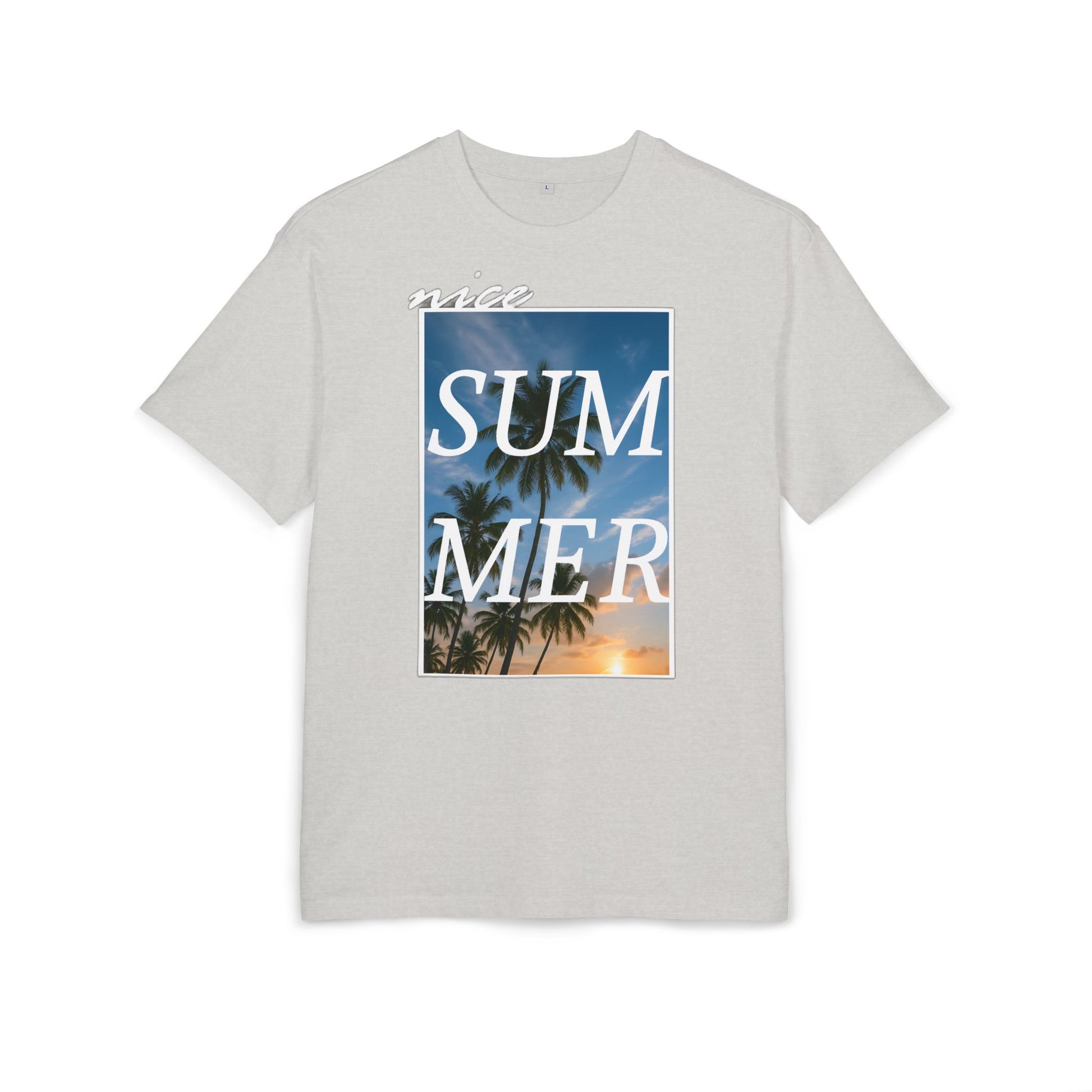 Nice Summer T-Shirt (Brustprint)– Palmendesign, Sonnenuntergang & Urlaubs-Vibes | Unisex Oversize Shirt für den Sommerlook
