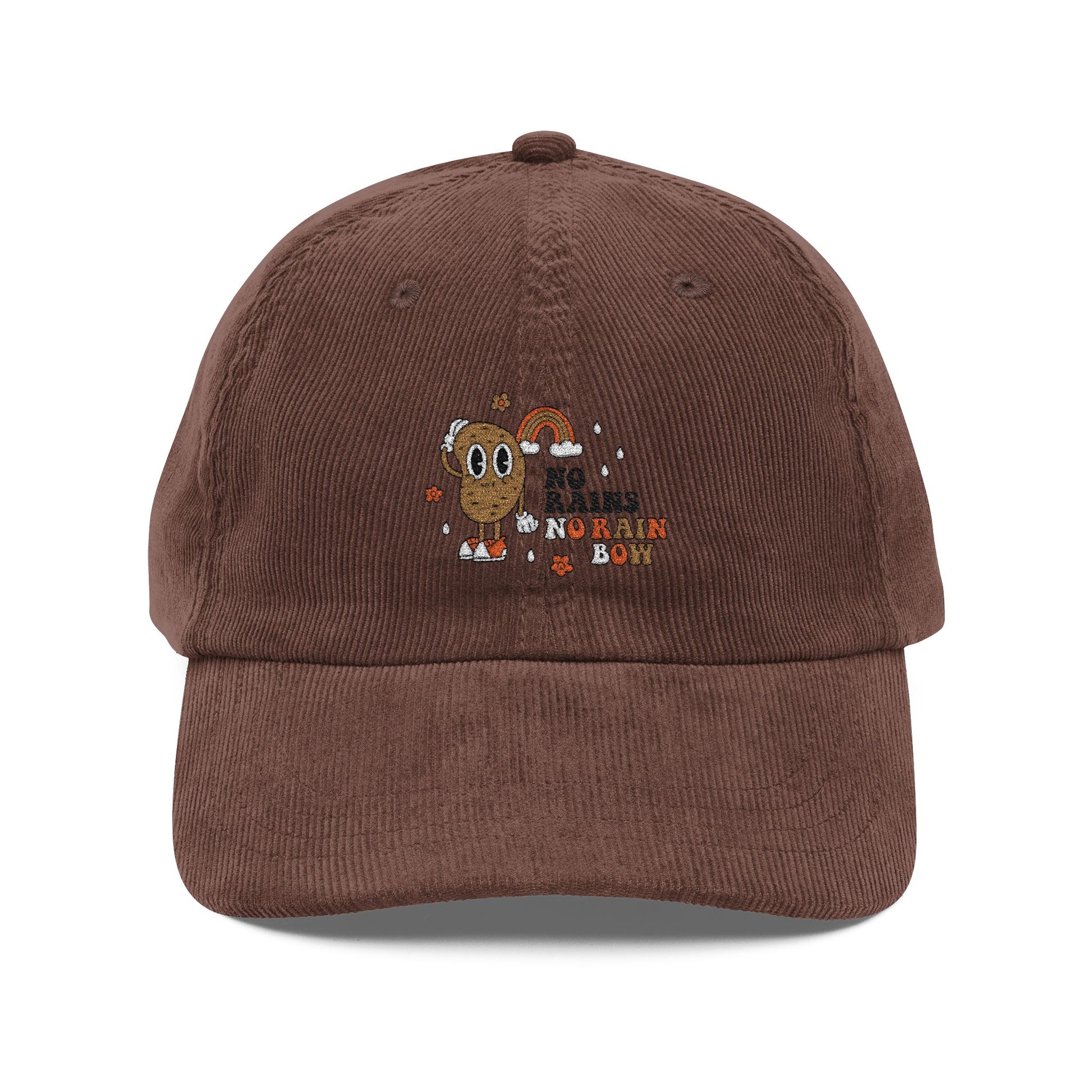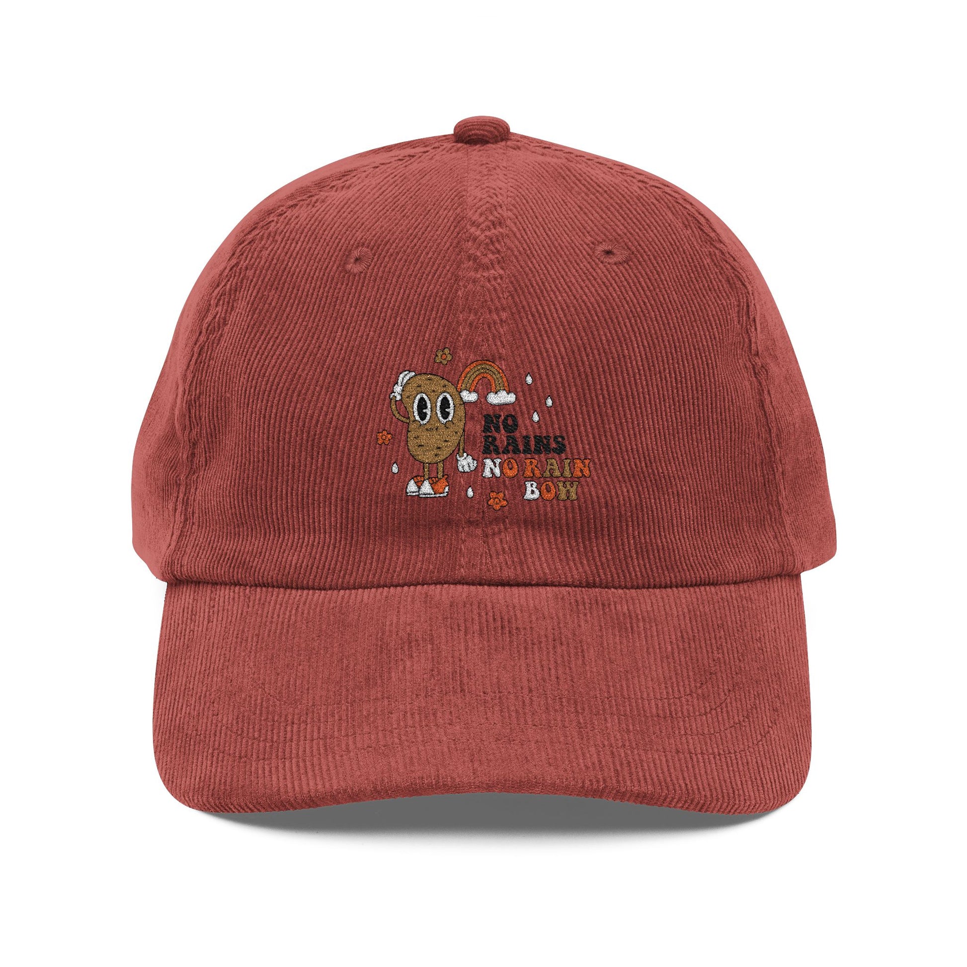 No Rains No Rainbow Cord Cap – Retro Cord Basecap mit Stickerei - Good Vibes, Gift for Friends, Relaxed Fashion