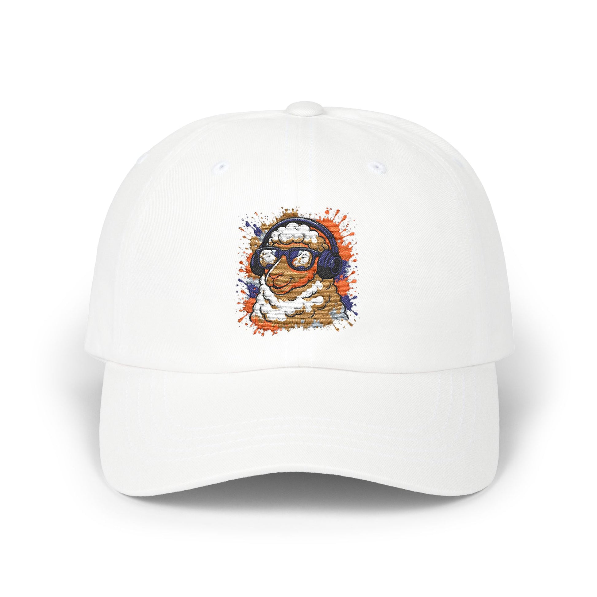 Schaf Cap – Stylische Unisex Basecap mit Kopfhörer-Schaf & buntem Farbspritzer-Design