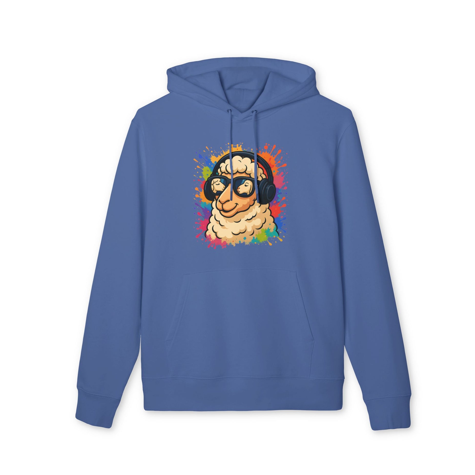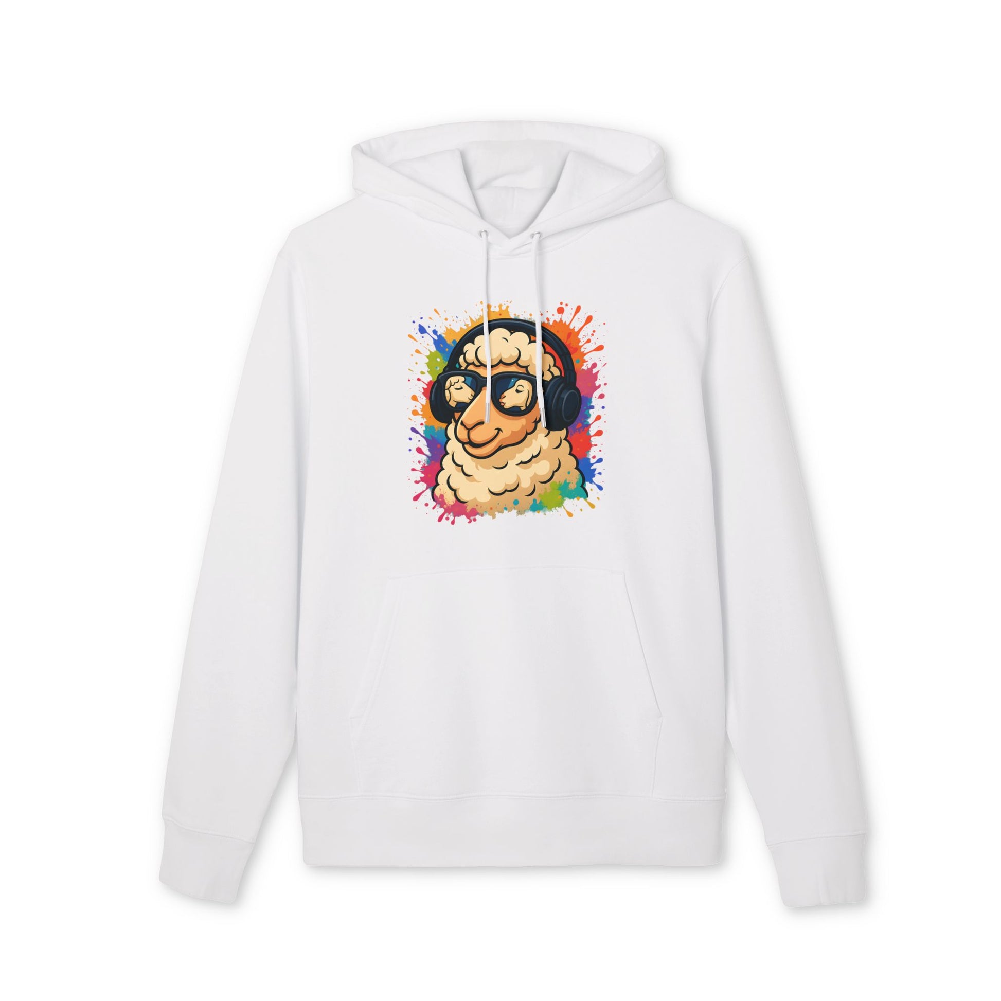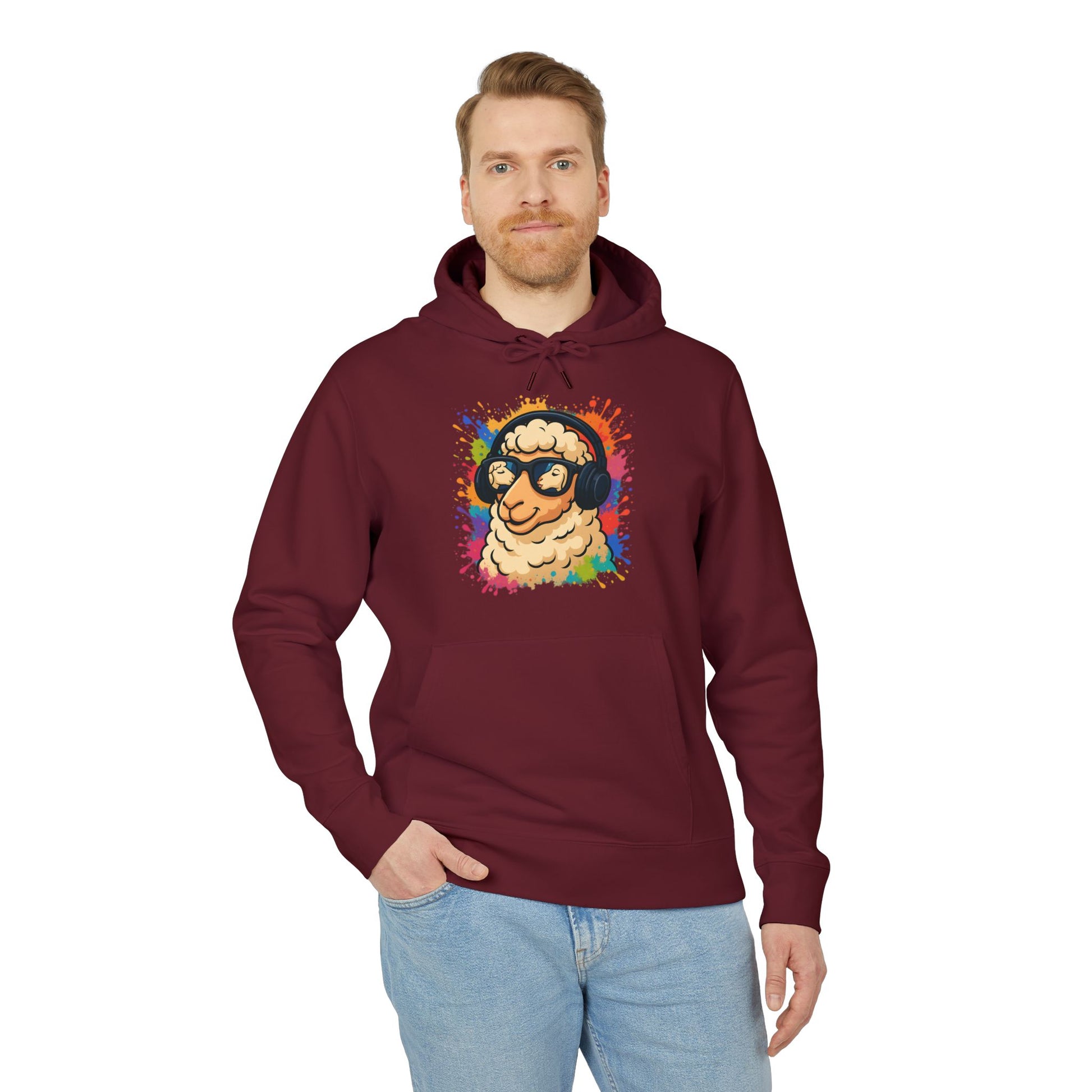 Schaf Hoodie (Brustprint) – Lustiger Unisex Kapuzenpullover mit Kopfhörer-Schaf & buntem Farbspritzer-Design