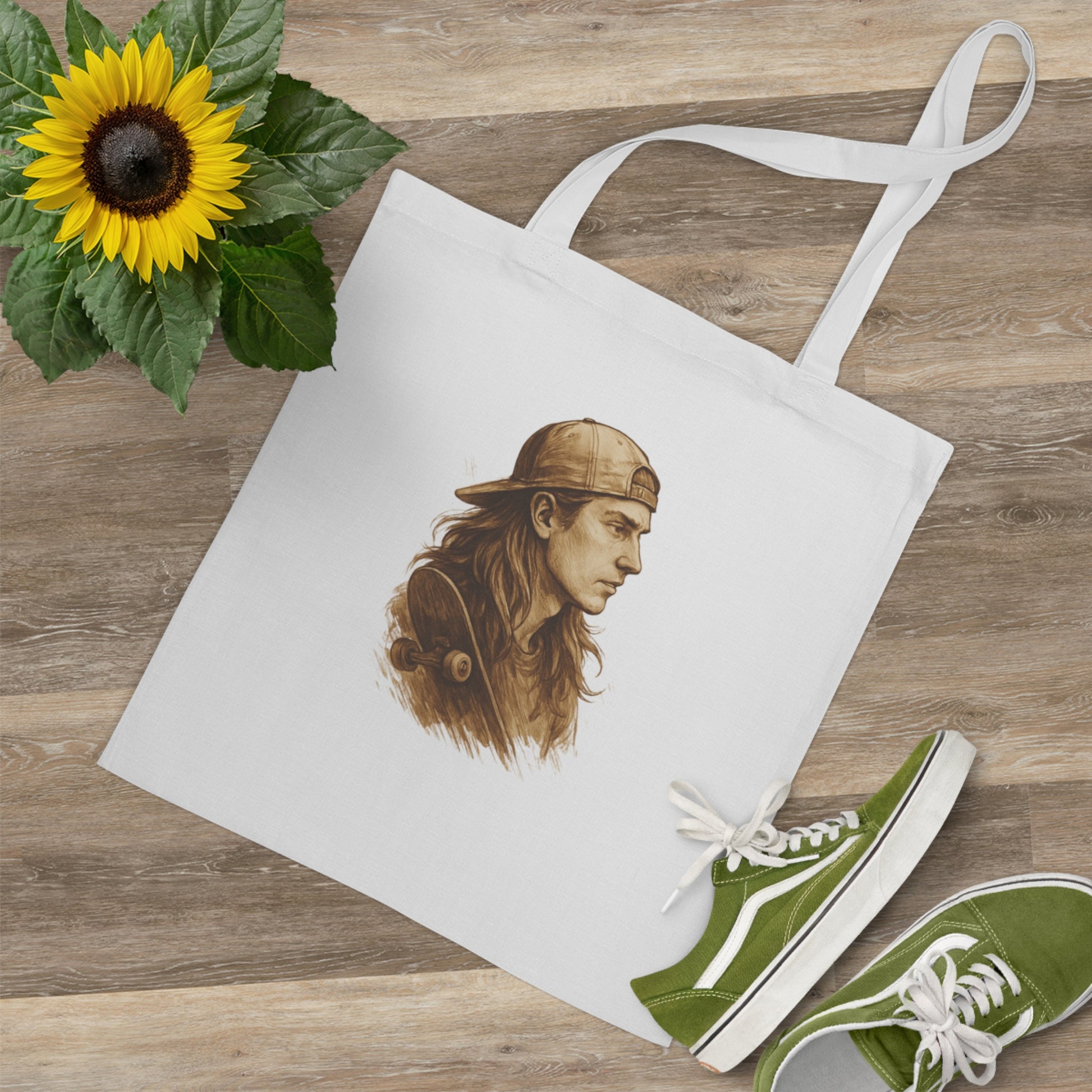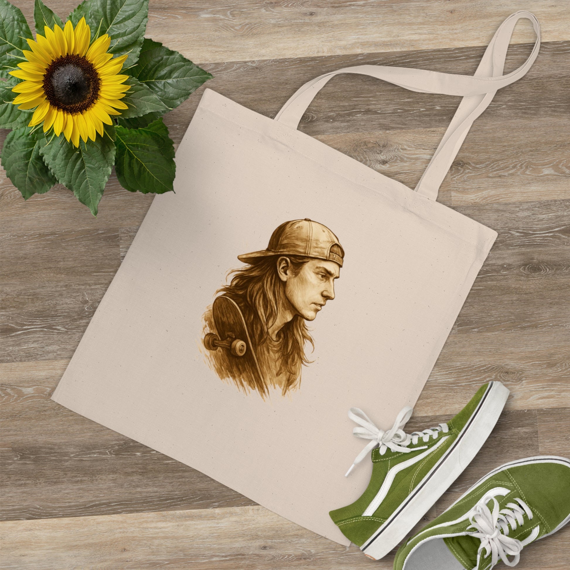 Skater Jutebeutel – Nachhaltige Stofftasche mit Retro Skateboard Motiv – Unisex Streetwear Accessoire