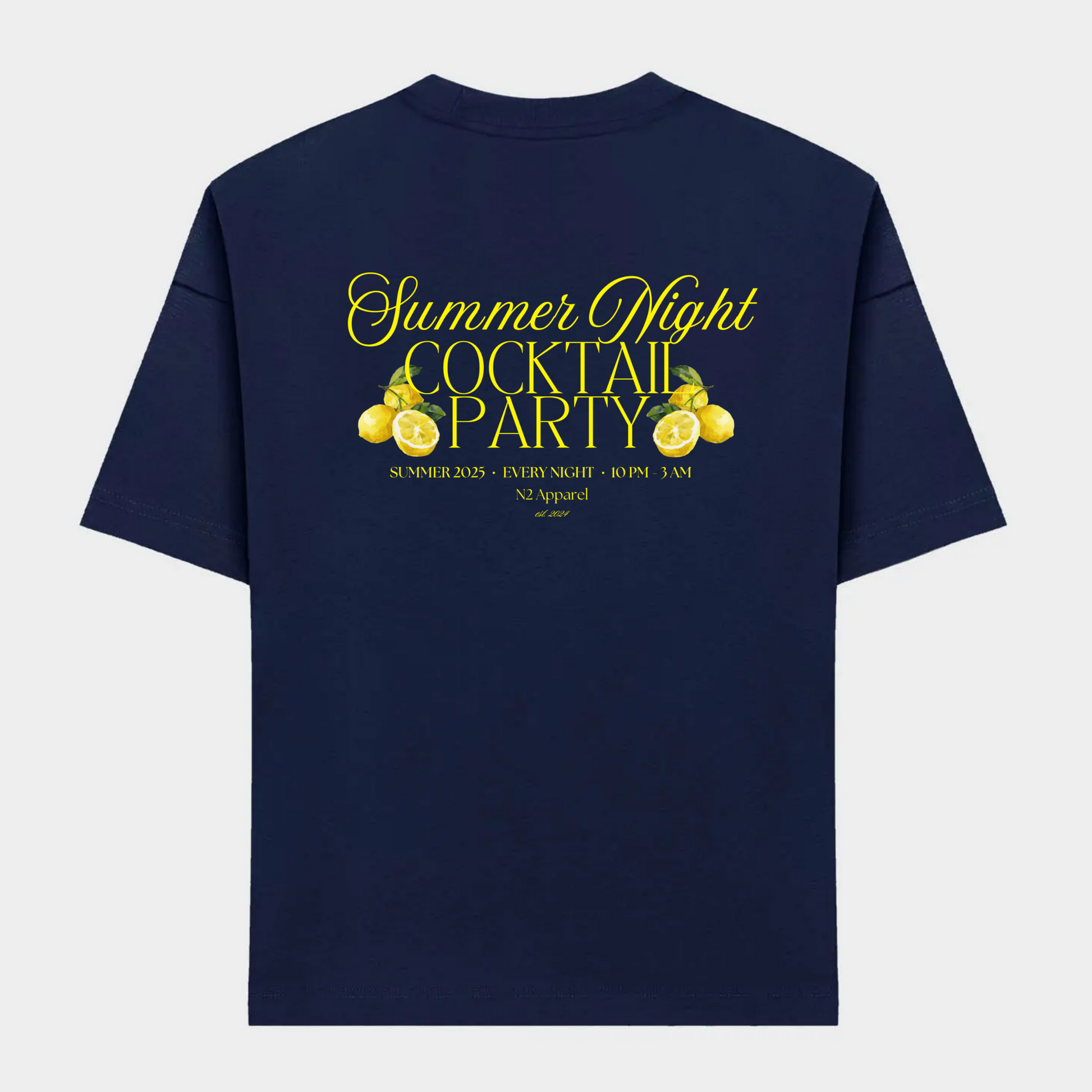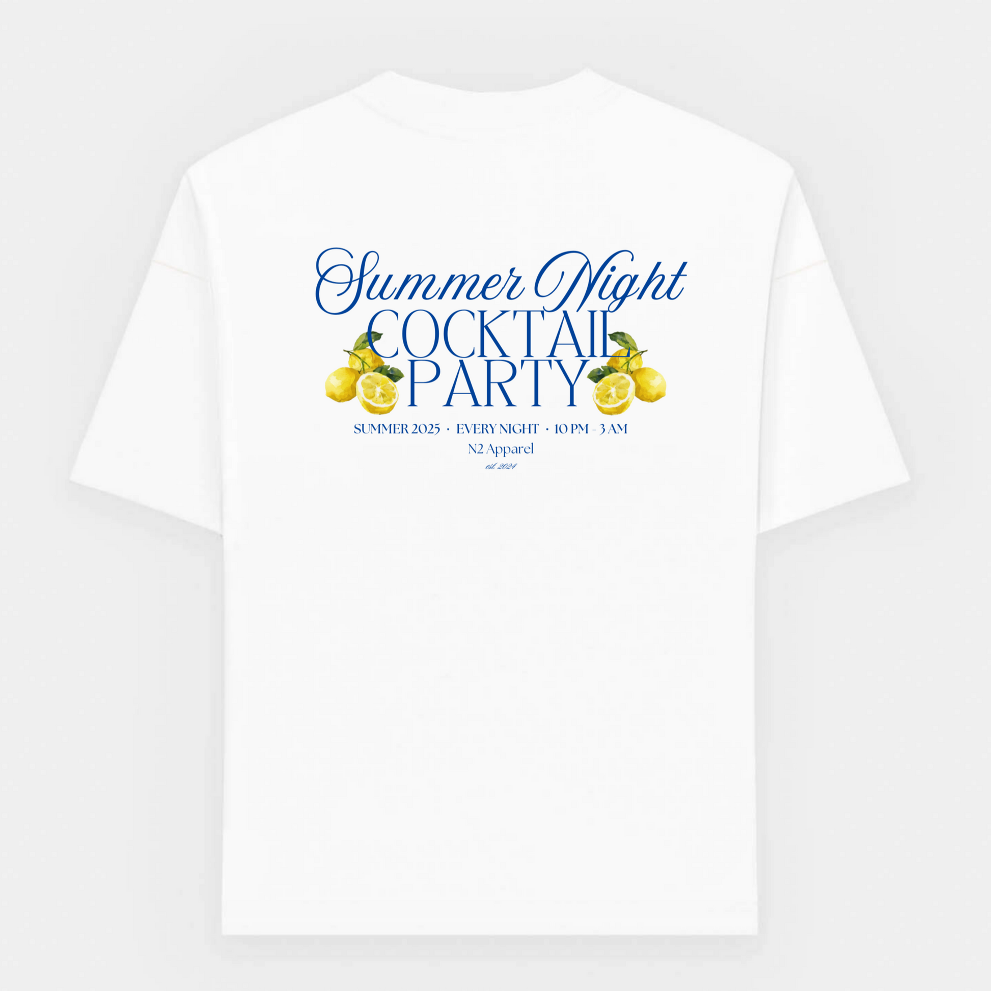 This oversized T-Shirt is perfect for a summer night cocktail party. Its heavyweight material and loose fit allow for comfort and style while enjoying a refreshing drink at your next soirée. Elevate your summer wardrobe with this must-have piece.